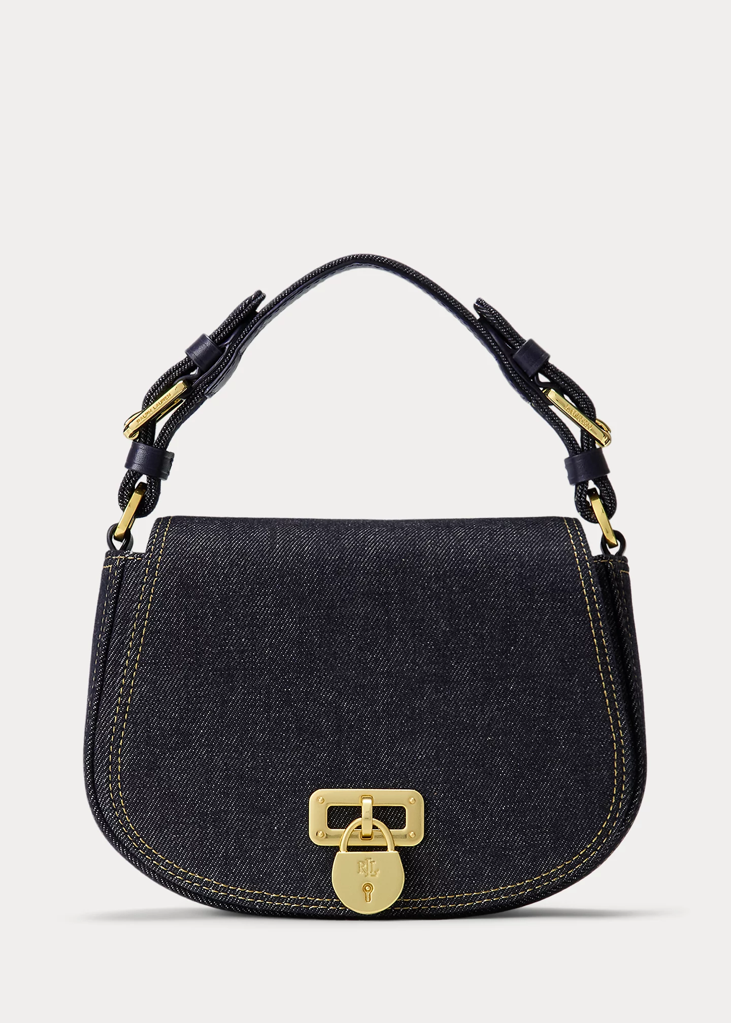 - Magnetic snapped closure. “LRL”-engraved brass-finished padlock charm at the flap. “Lauren”-engraved brass-finished buckles. “Lauren Ralph Lauren est. 1967”–engraved brass-finished plaque at the interior.