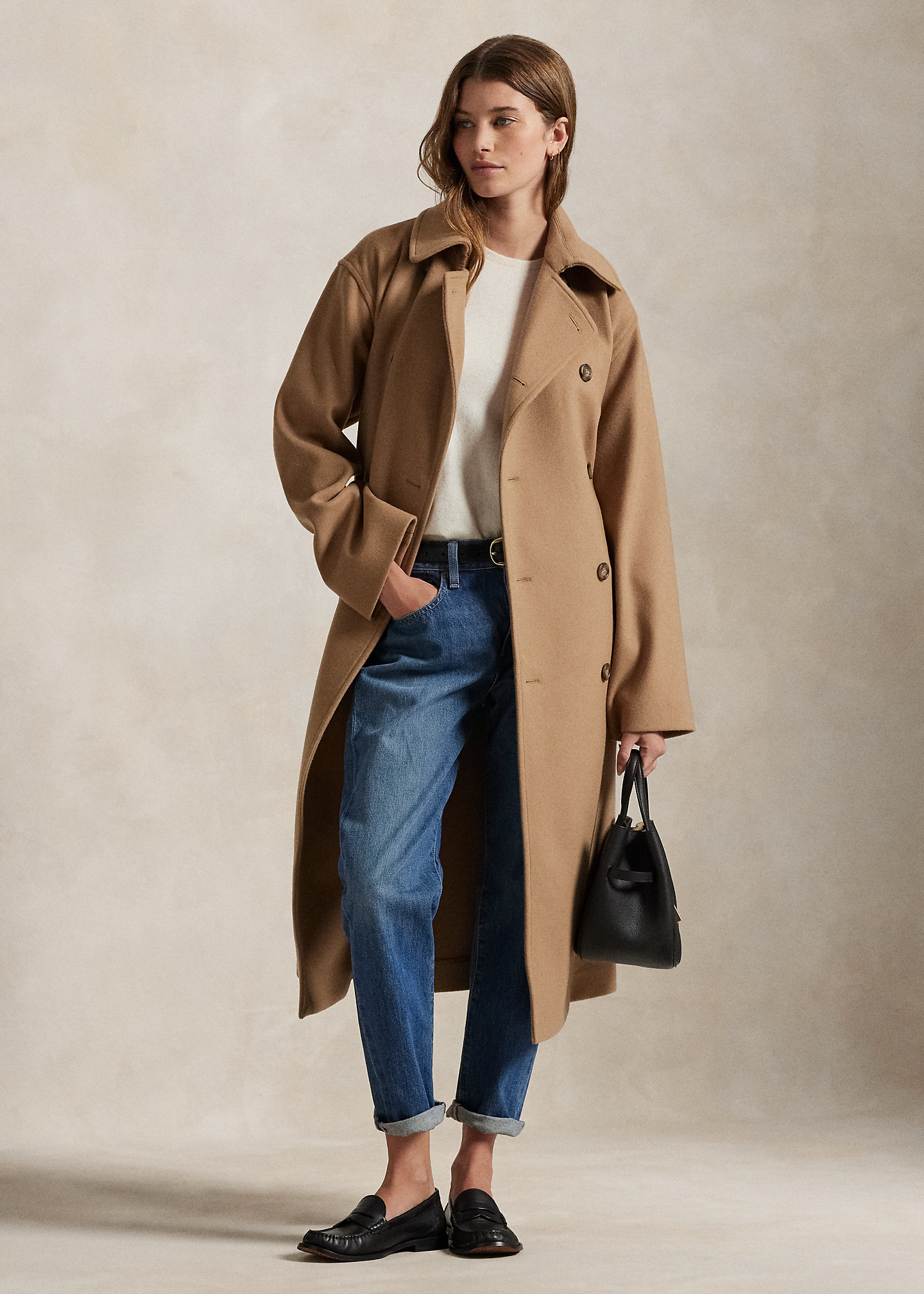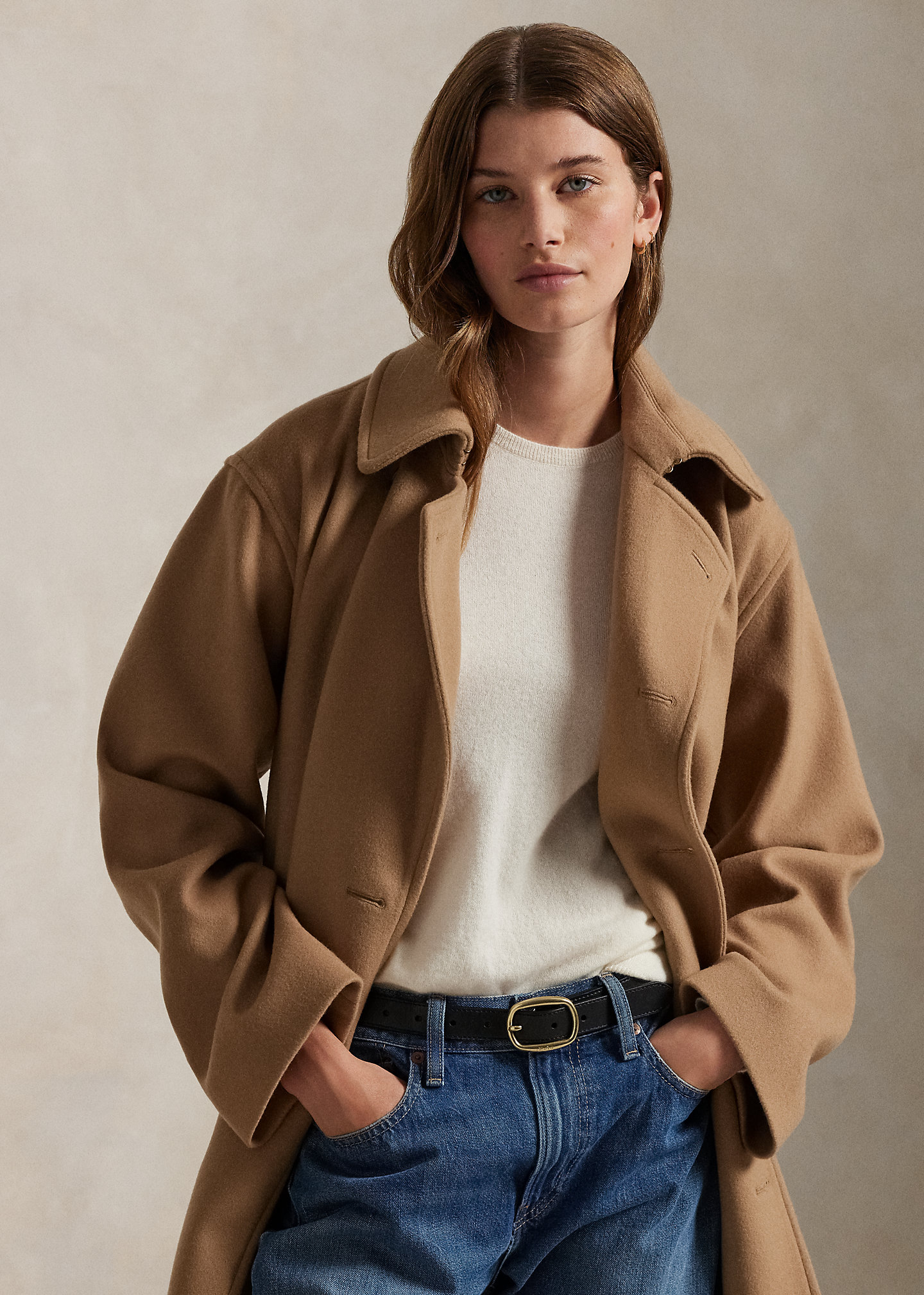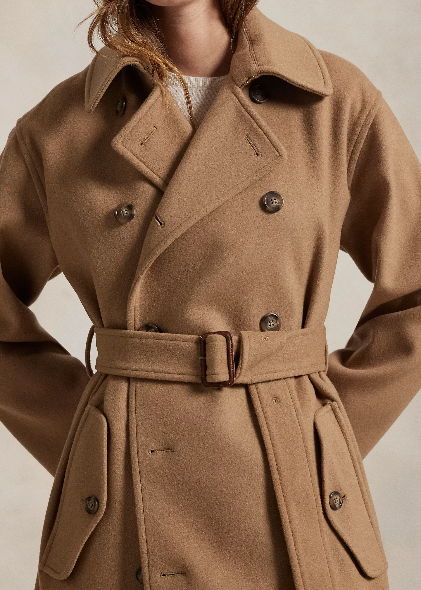 Double-Breasted Wool Melton Trench Coat