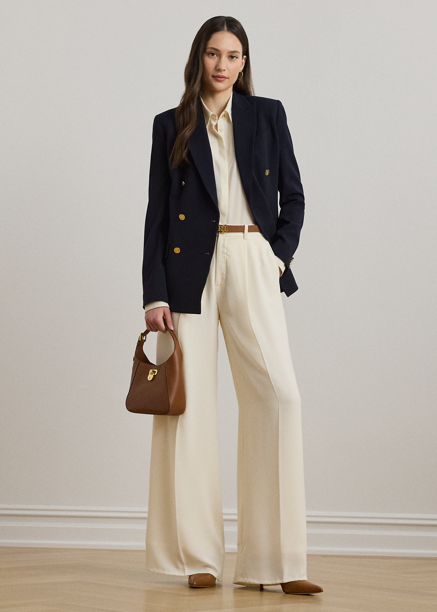 - High rise. Wide-leg silhouette. Intended to hit below the ankle.