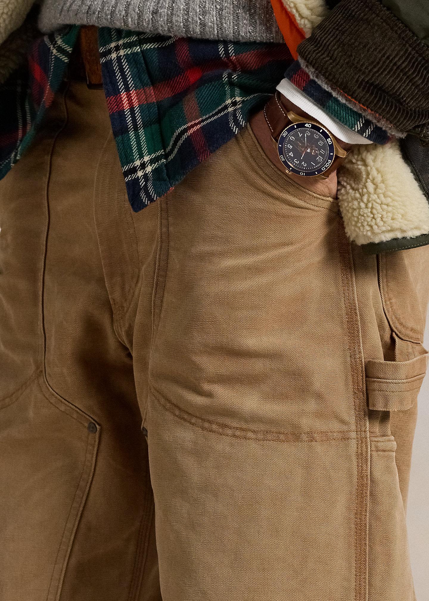 - "Polo Chino Ralph Lauren" label at the back right pocket. Signature metal rivets. Reinforced stitching at the front knees. Archival "Polo Country" label at the interior.
