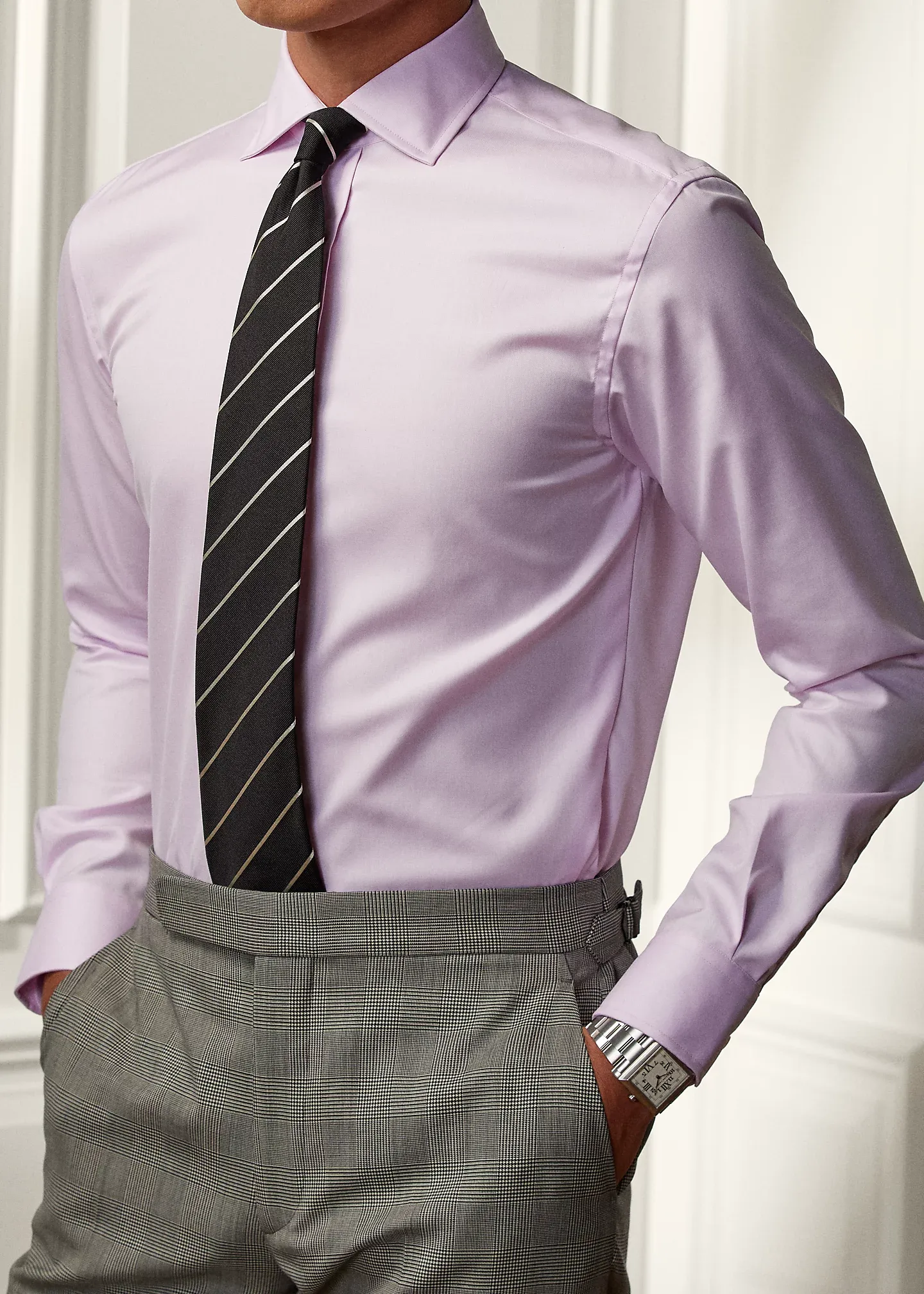 - Spread collar. Signature collar stays.