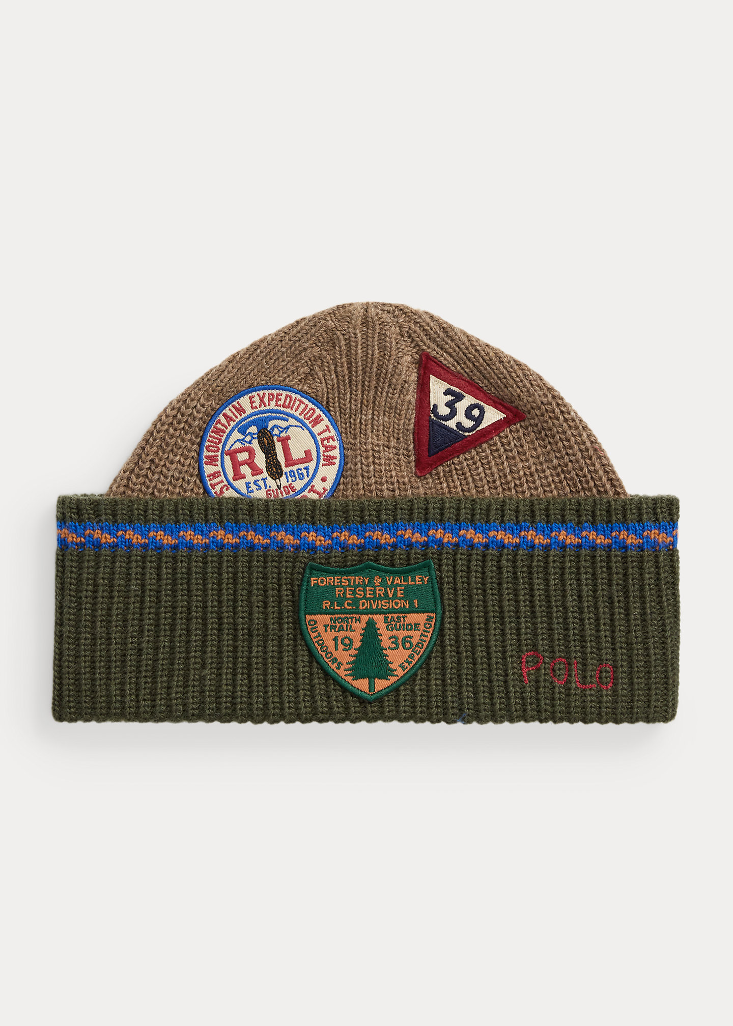 - "5th Mountain Expedition Team" and "39" patches at the crown. "Forestry & Valley Reserve R.L.C. Division 1" patch and "Polo" embroidery at the cuff.