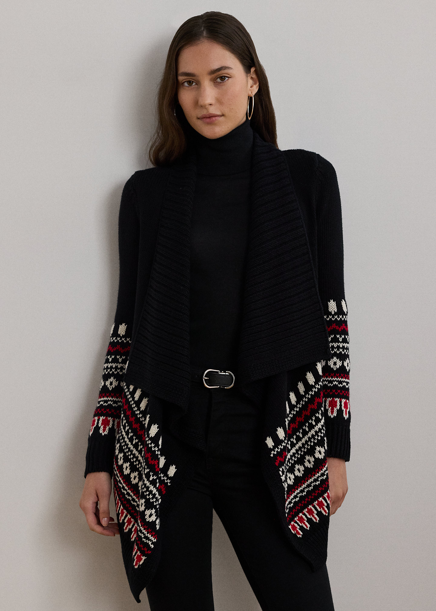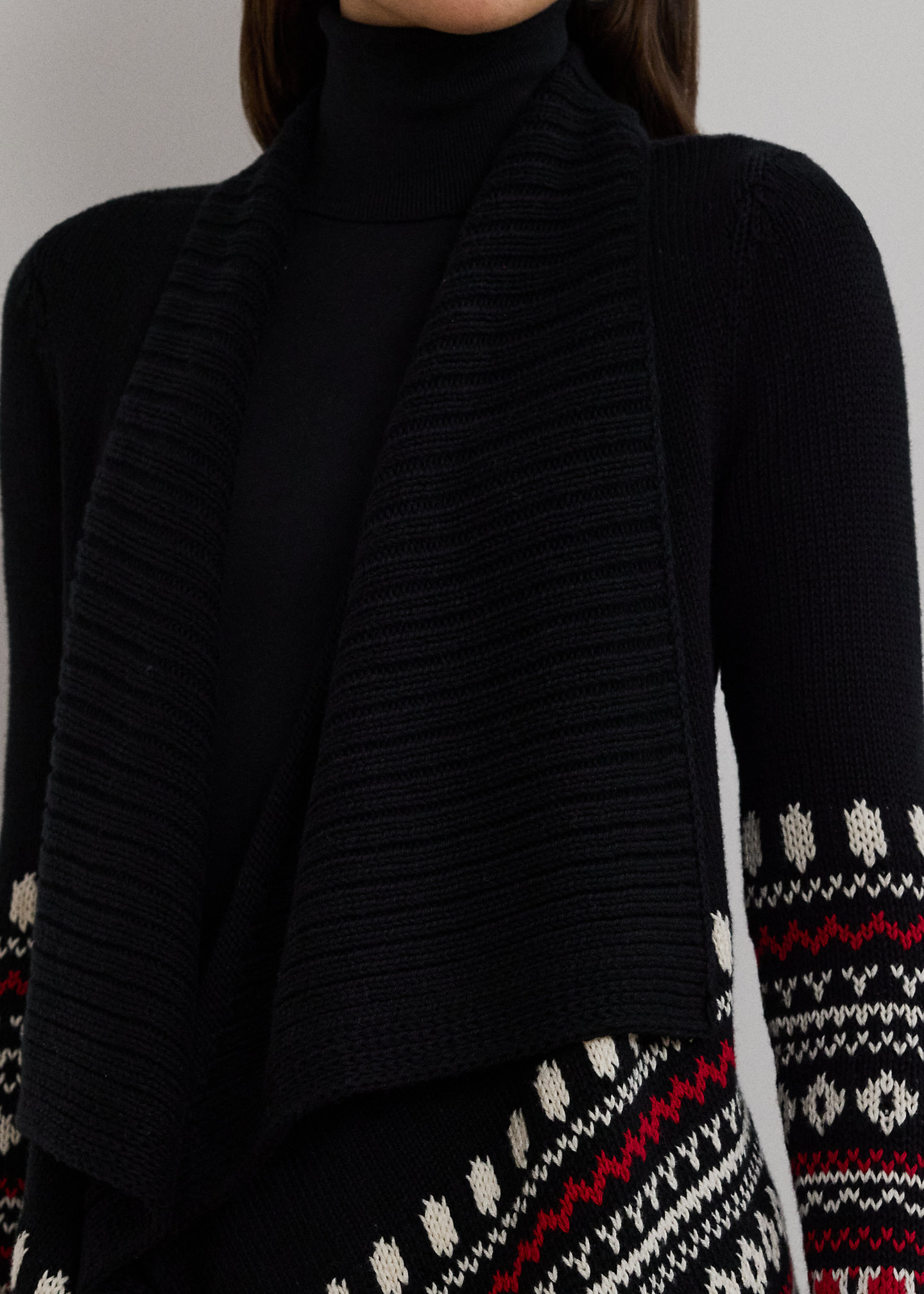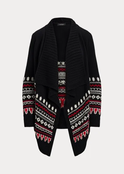 Fair Isle Cotton Shawl-Collar Cardigan