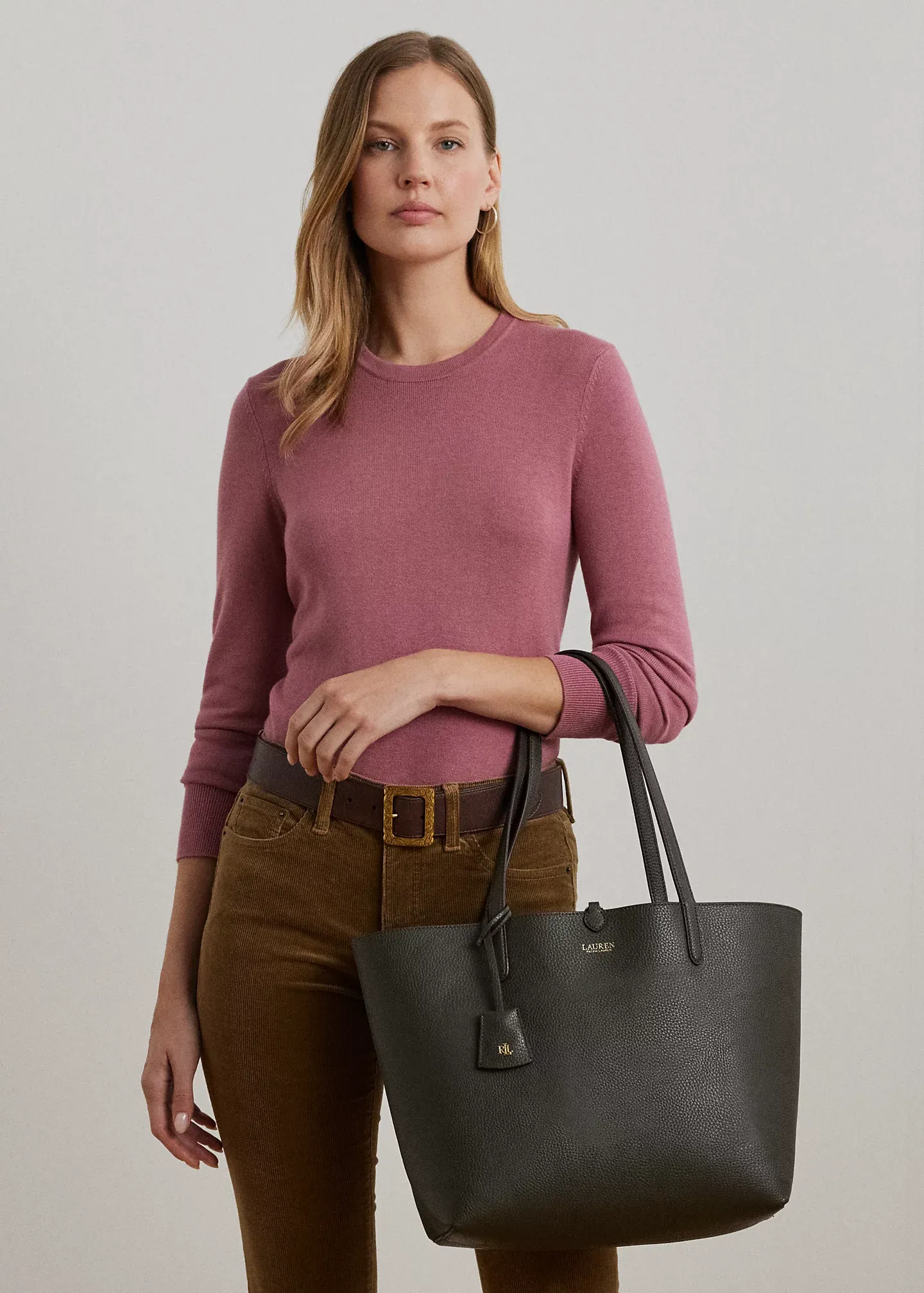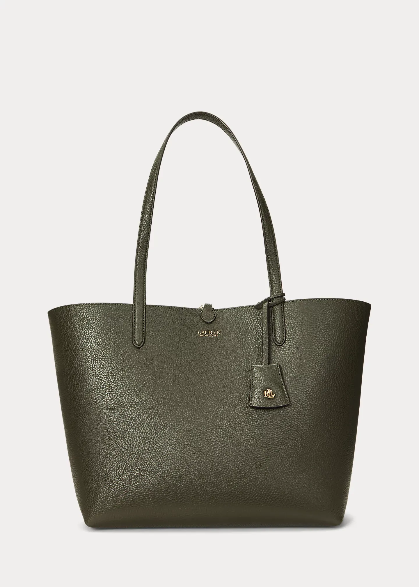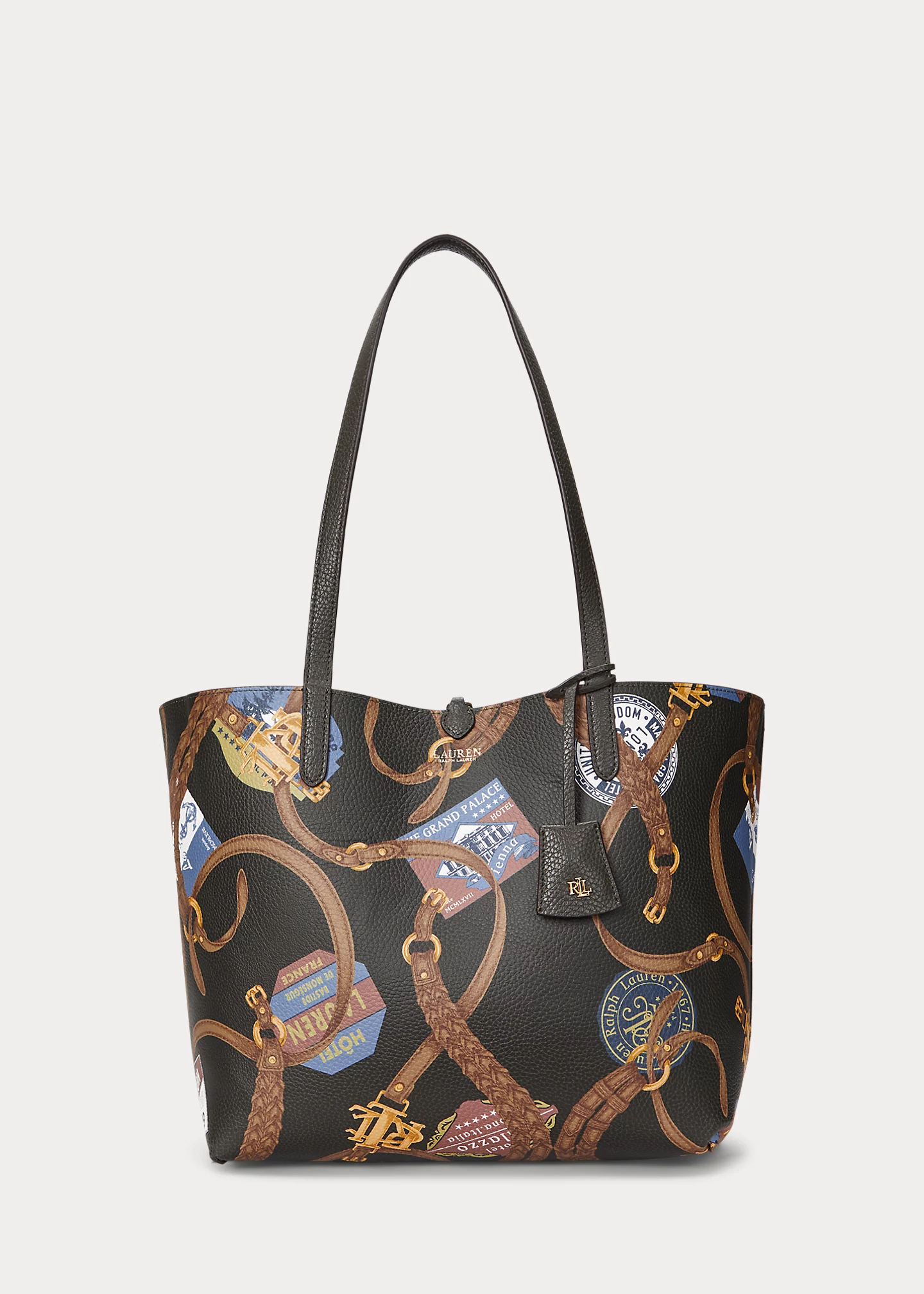 - Foil-printed “Lauren Ralph Lauren” logo at the front. Comes with a removable luggage tag with “LRL” metal hardware.
