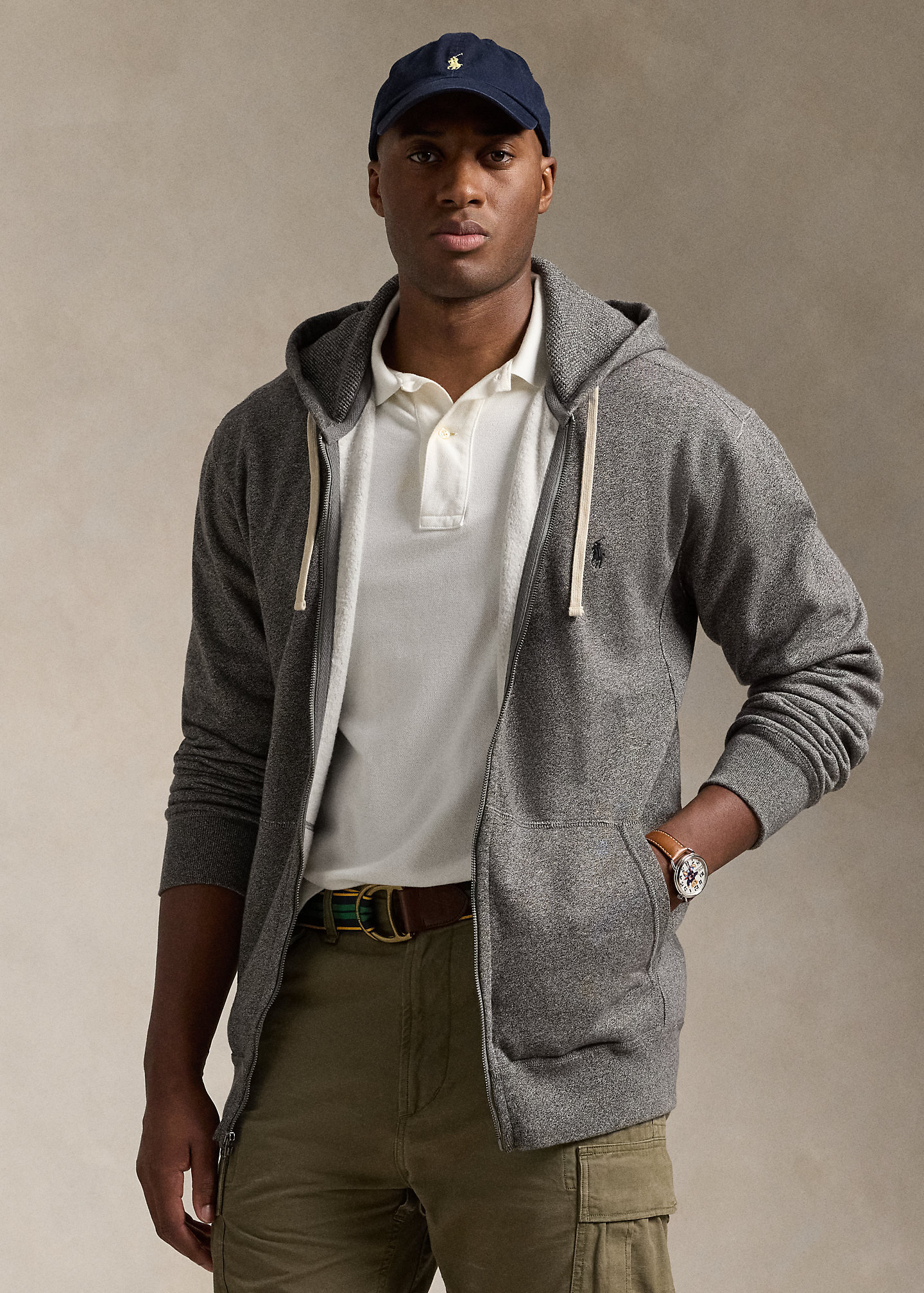 - Signature embroidered pony at the left chest.