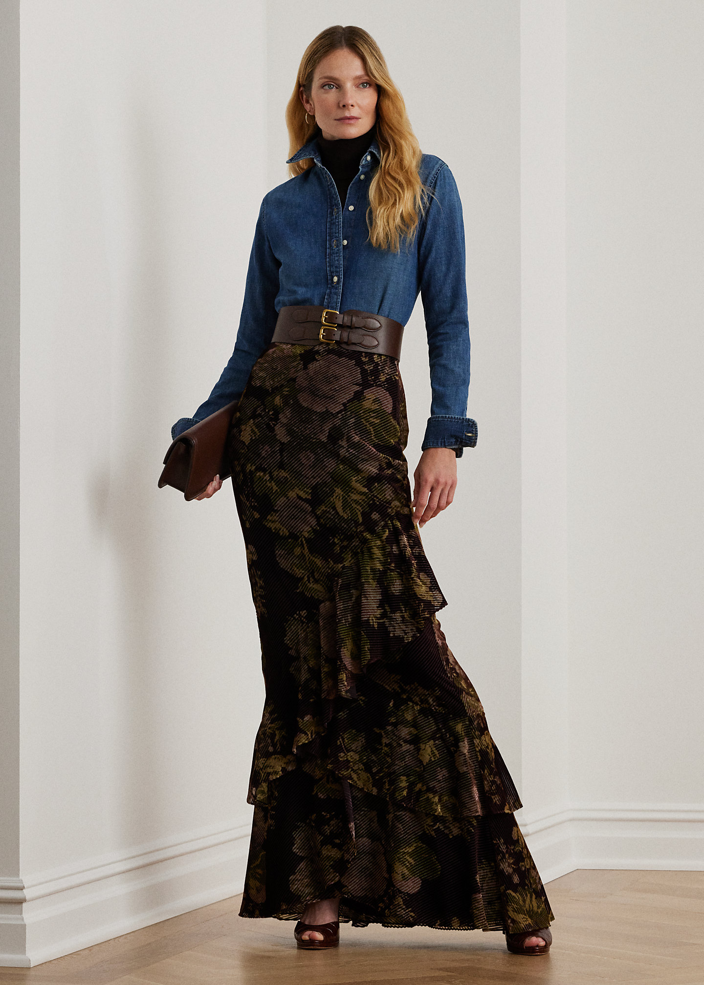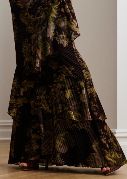 - Concealed left-side-seam zipper with a hook-and-eye closure.