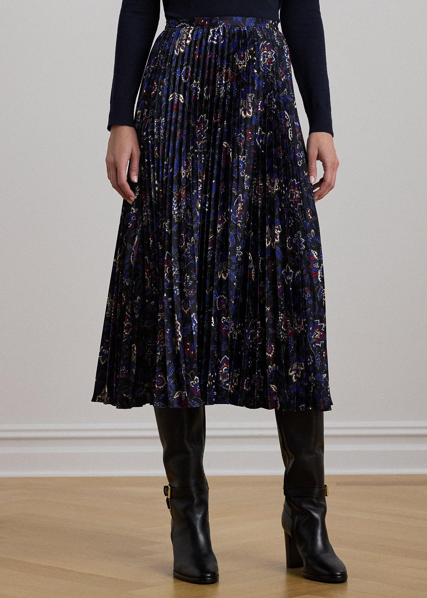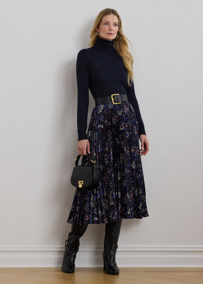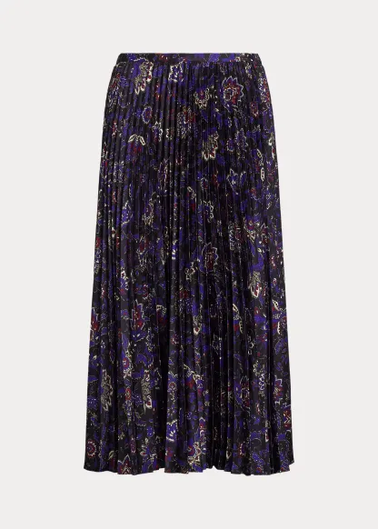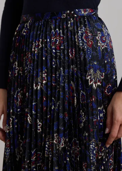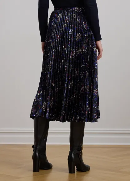 Floral Pleated Satin Charmeuse Skirt