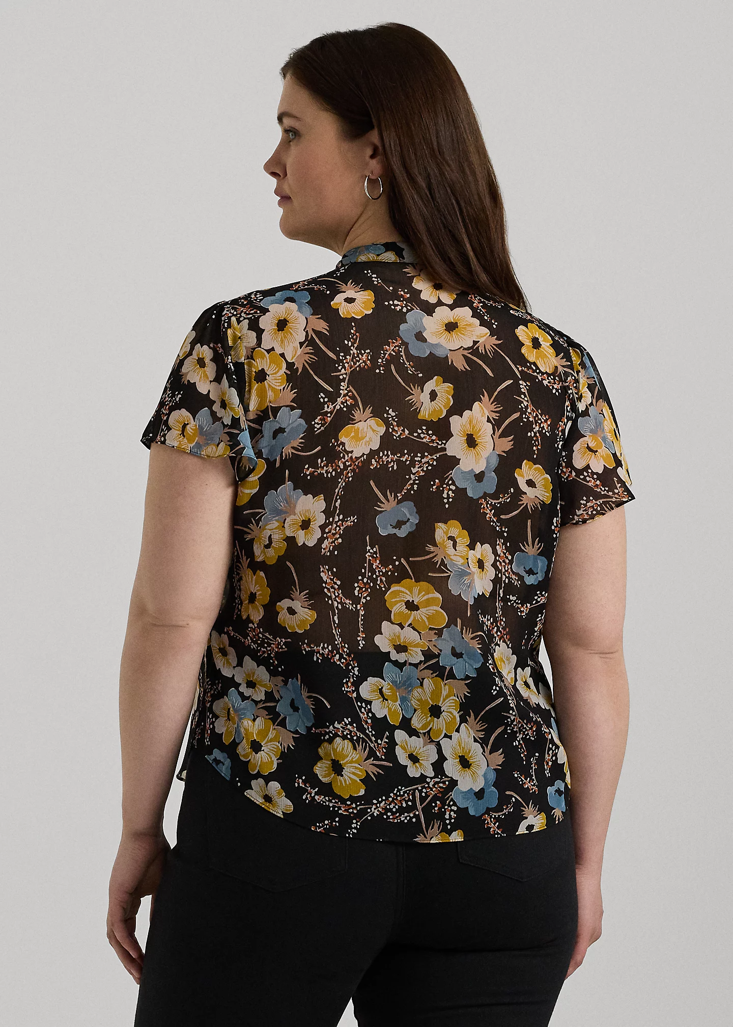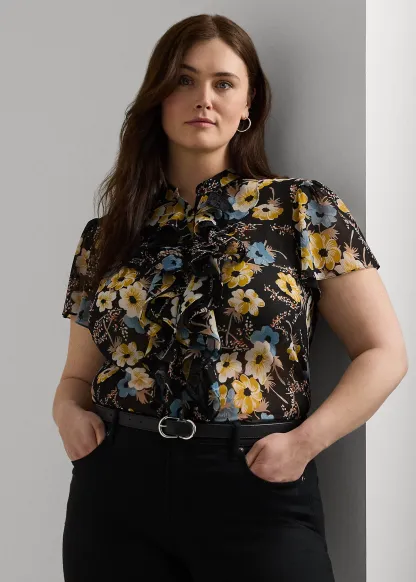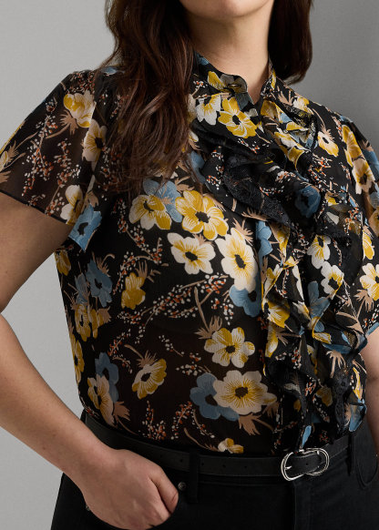 Floral Ruffle-Trim Georgette Blouse