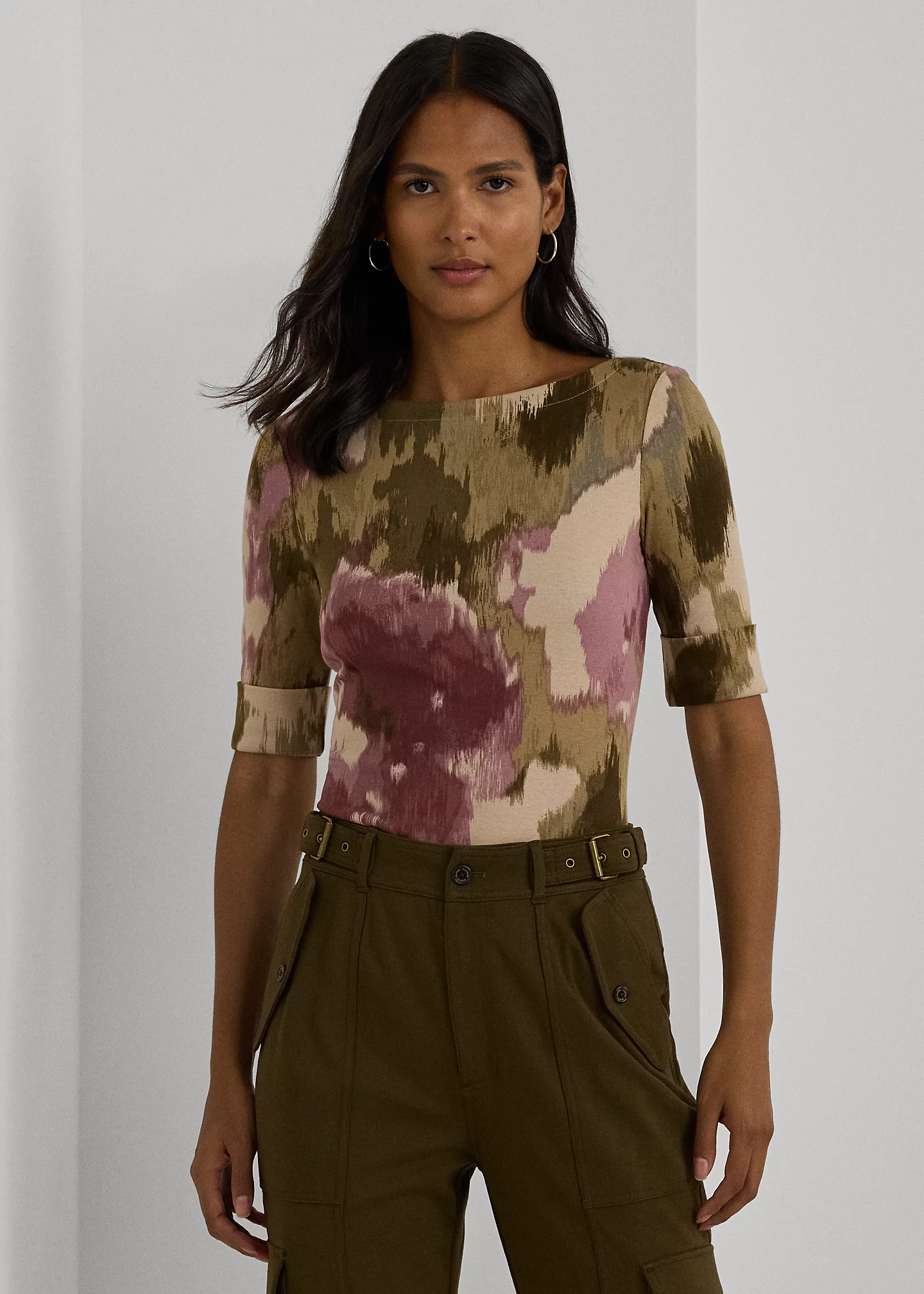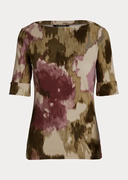 Floral Stretch Cotton Boatneck Tee