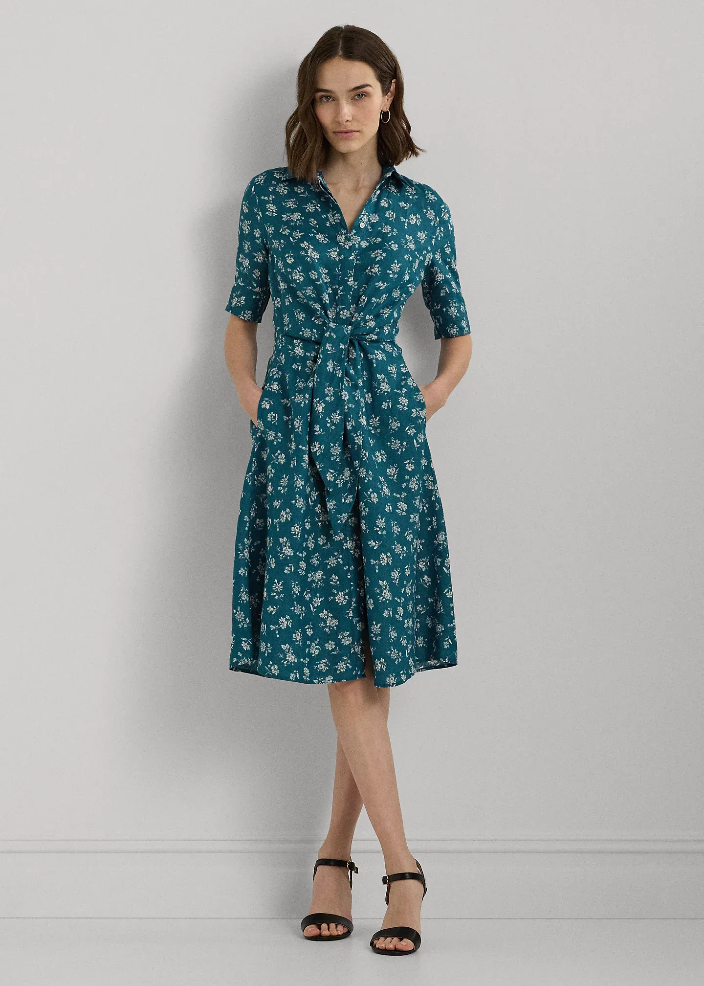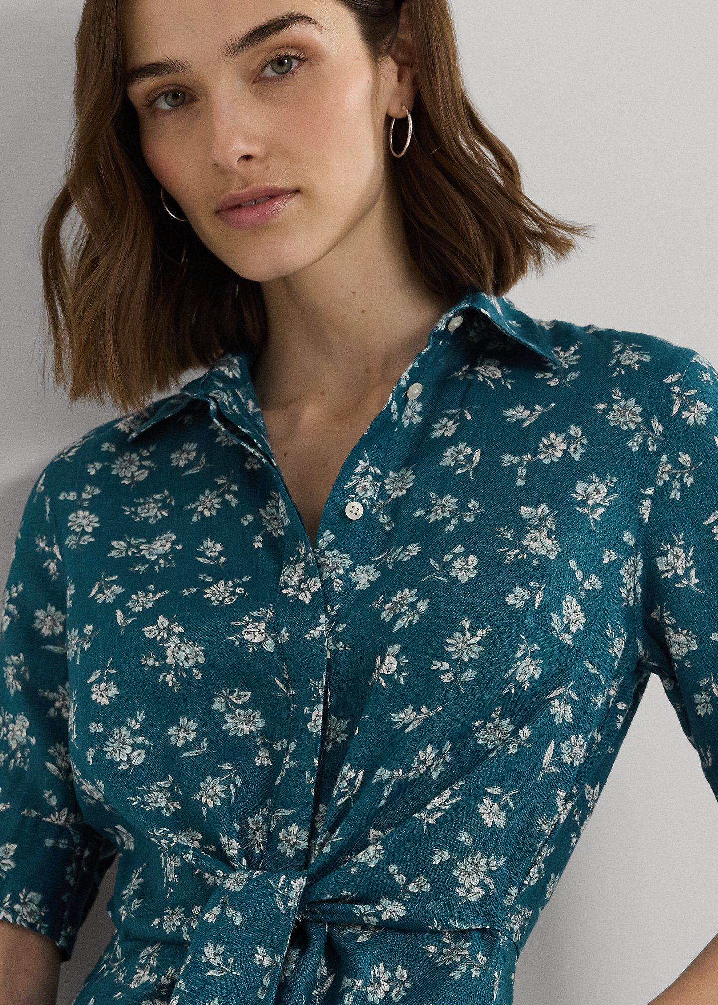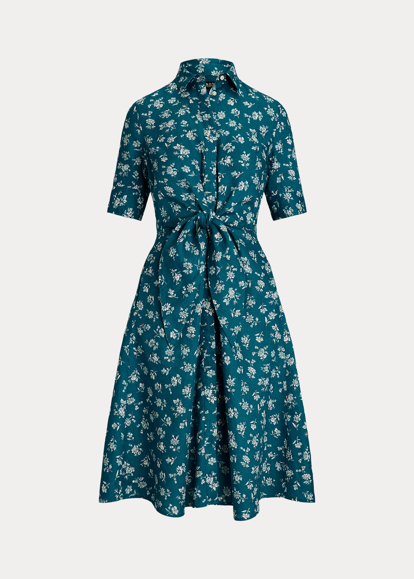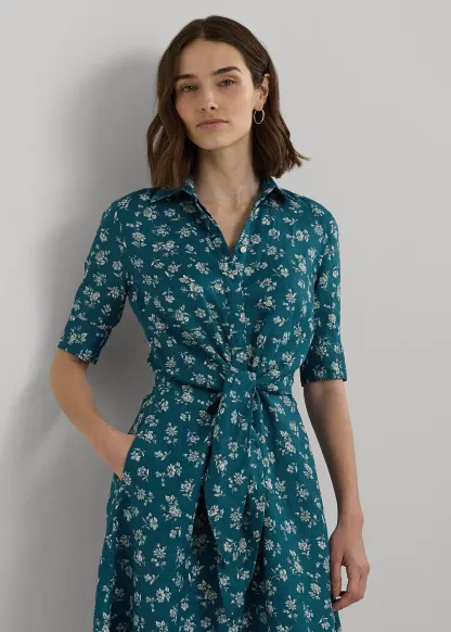 Floral Tie-Front Linen Shirtdress