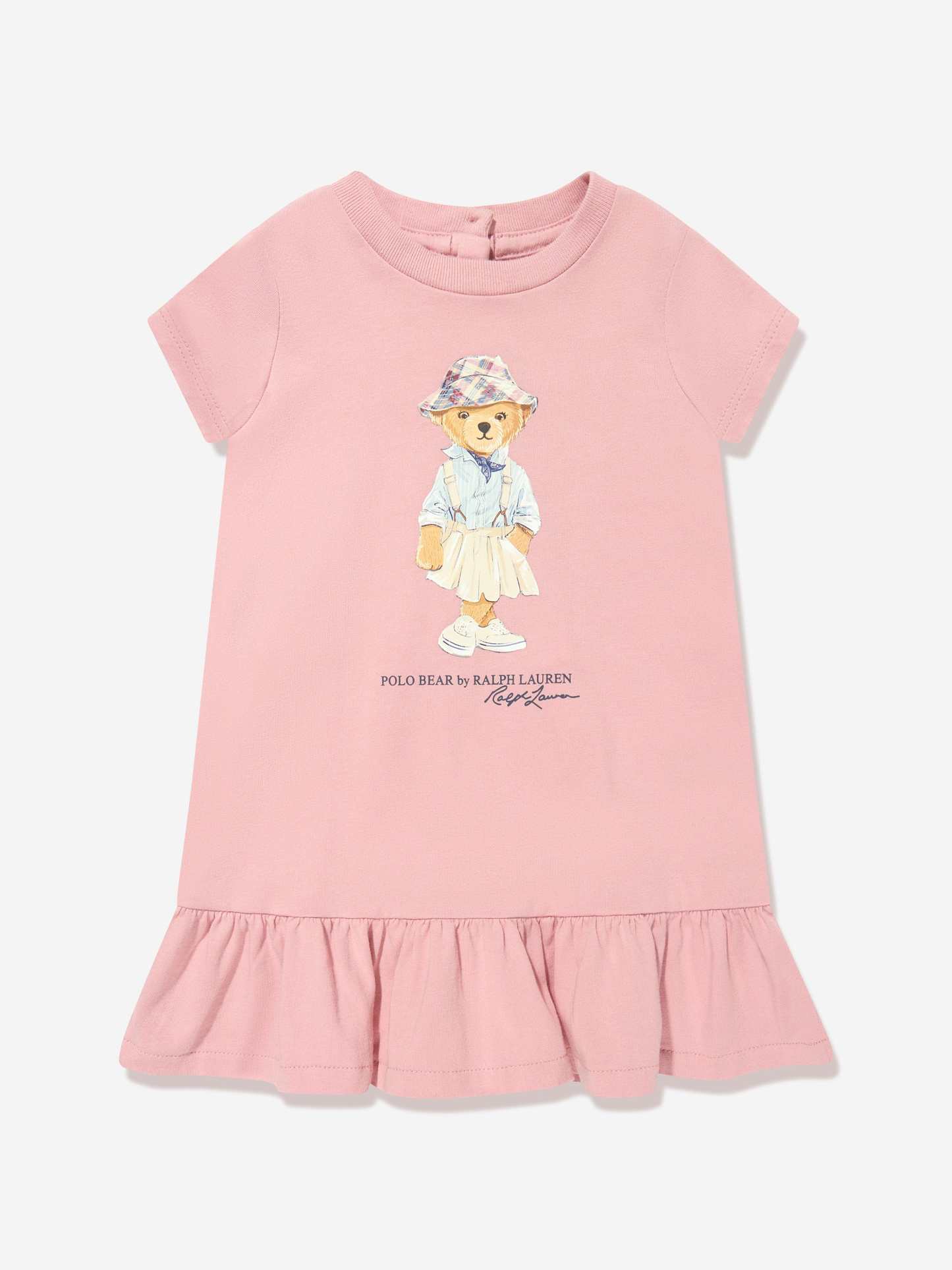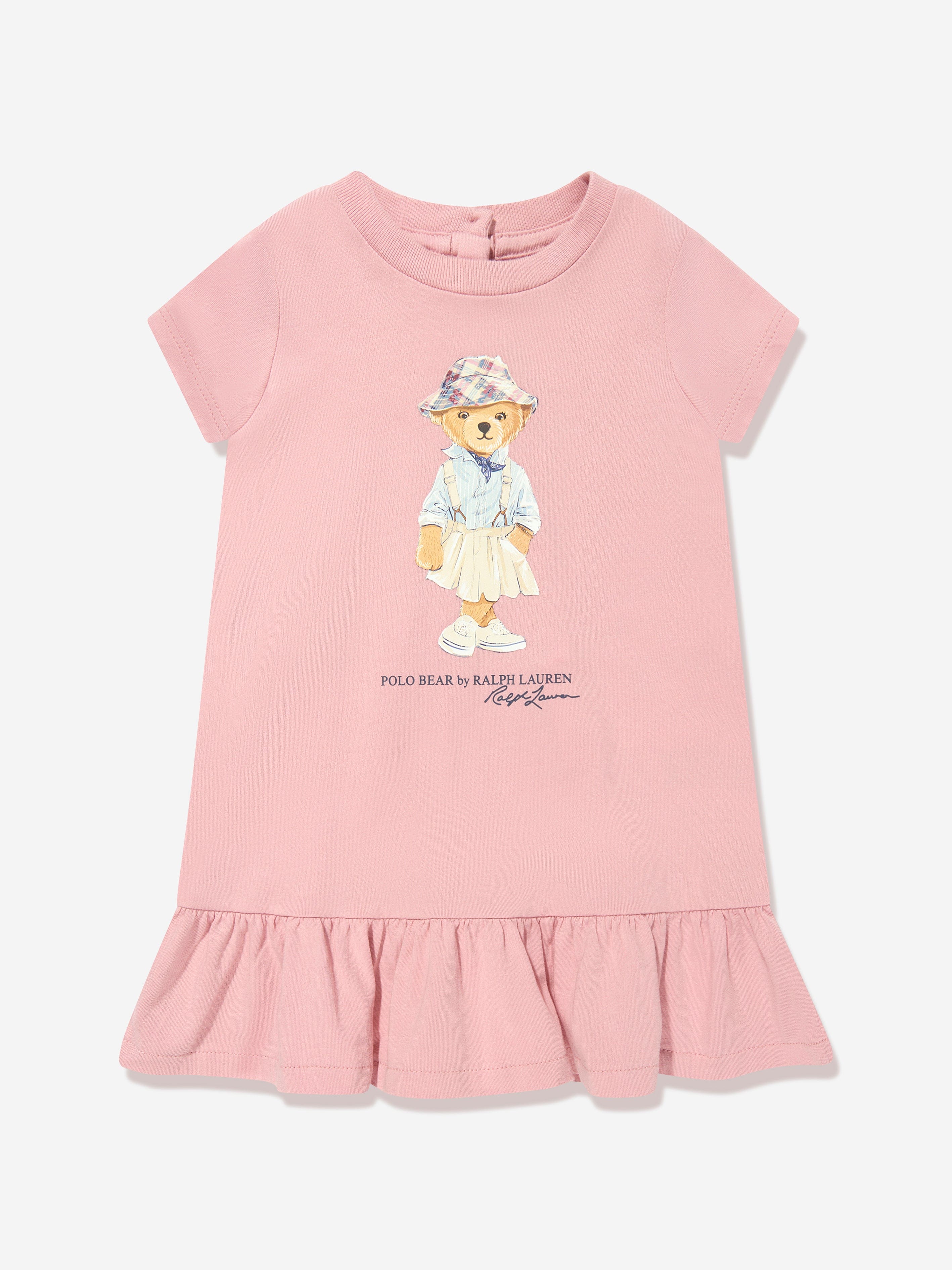 Rattglph Lauren Girls Bear Jersey Dress in Pink