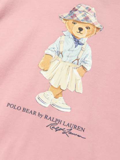 Ralph Lauren depict high quality and Ivy League sensibility into their beautifully crafted aesthetics. This girls tickled pink t-shirt dress is a captivating everyday staple piece. It showcases an elegant flared cut with a round neckline and the signature Teddy Bear print.