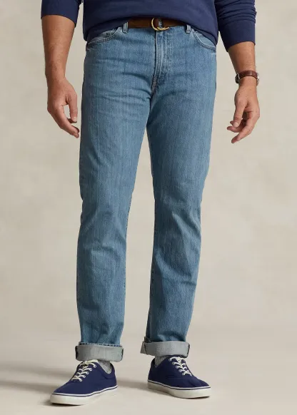 - Five-pocket styling with signature metal rivets. "Polo" label at the coin pocket.