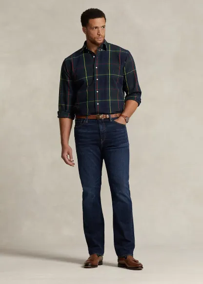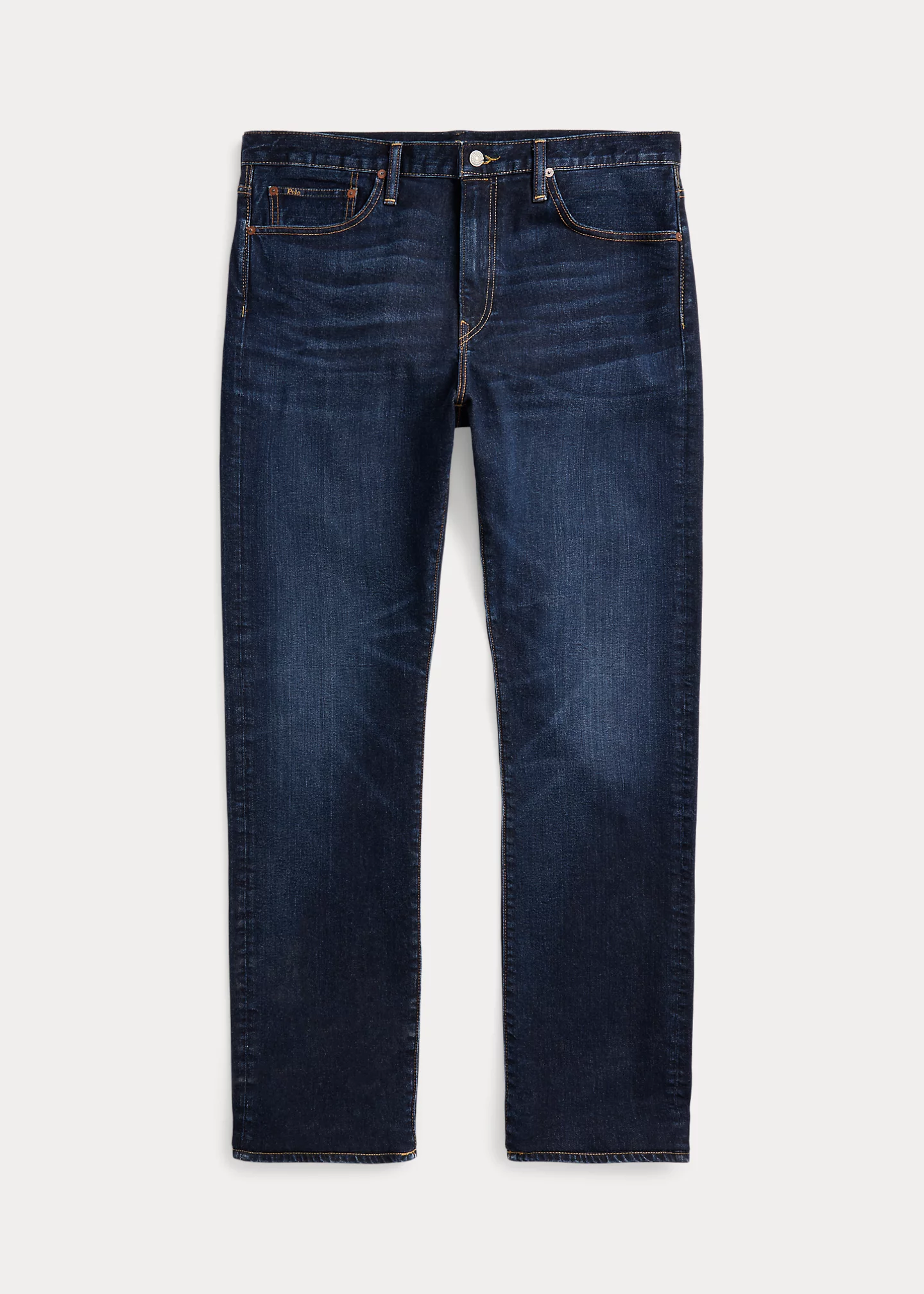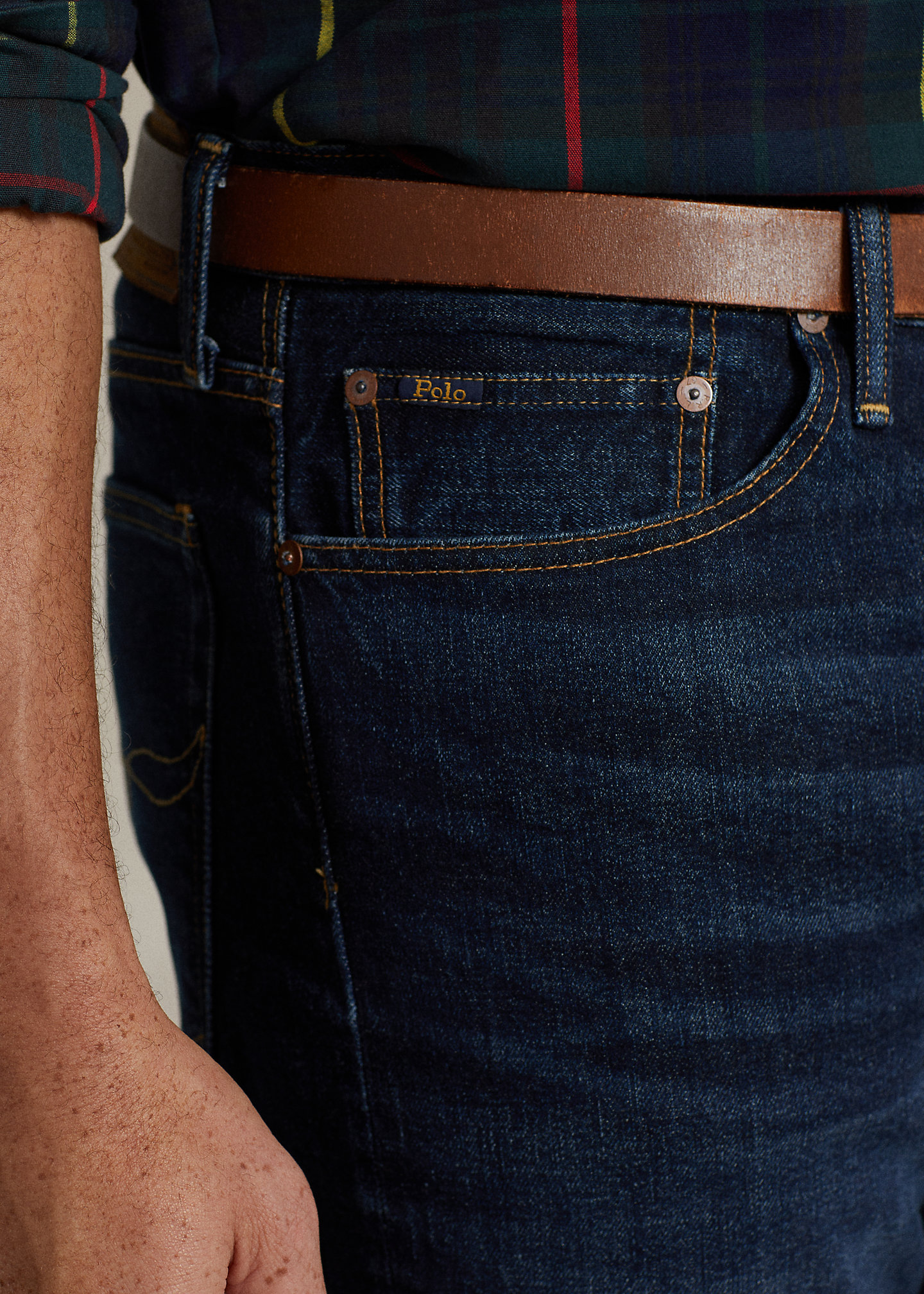- Five-pocket styling with signature metal rivets. Woven “Polo” label at the coin pocket.