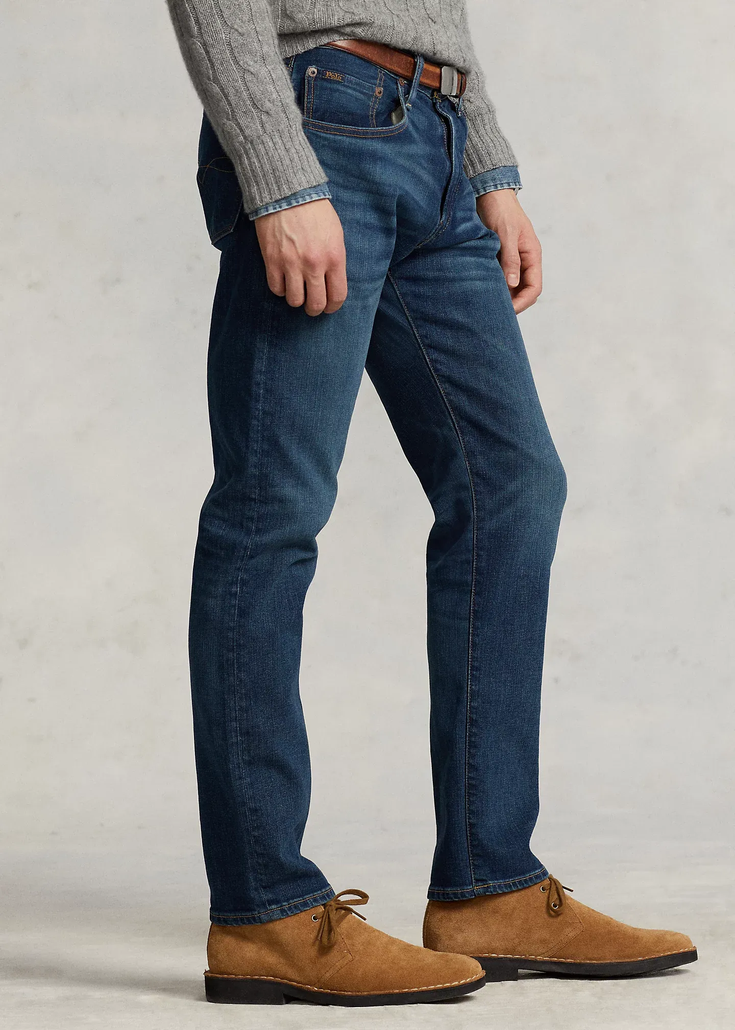 - Five-pocket styling with signature metal rivets. “Polo” label at the coin pocket.
