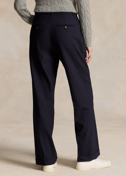 - Belt loops. Zip fly with a hook-and-bar closure at the center front. Interior curtain waistband.