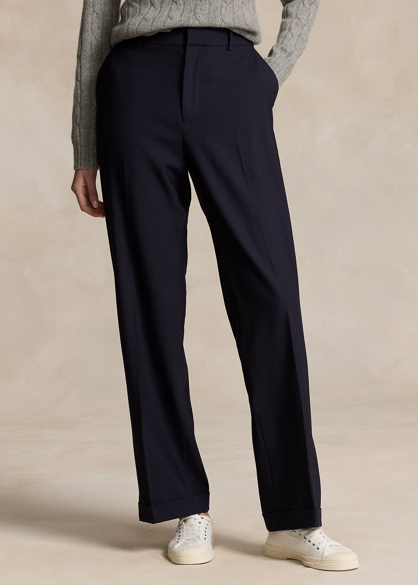- High-rise. Fitted through the hip and thigh with a straight leg. Hits below the ankle.