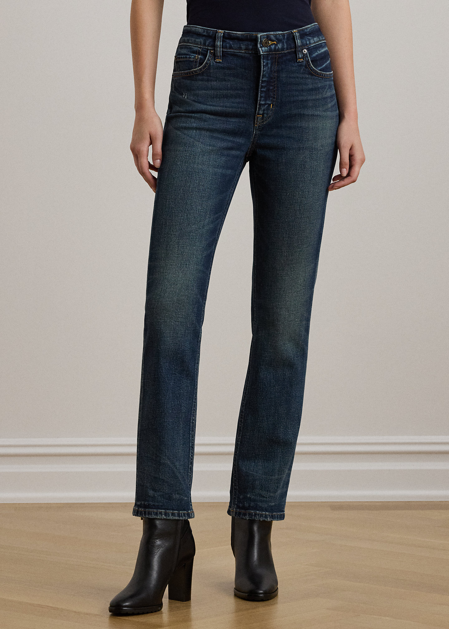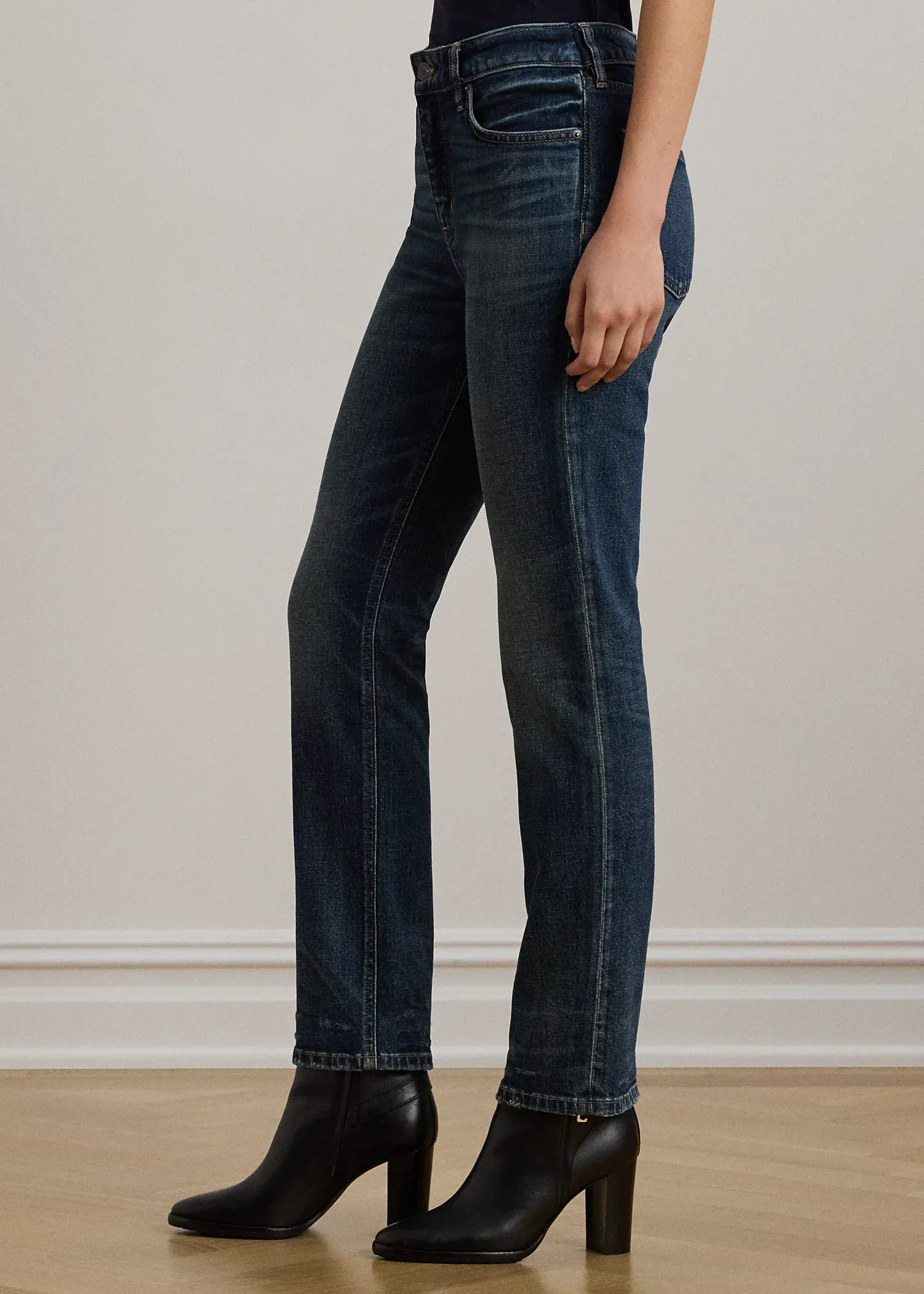 - High-Rise Straight Ankle: sits above the natural waist. Slim through the hip and the thigh with a slim, straight leg.
