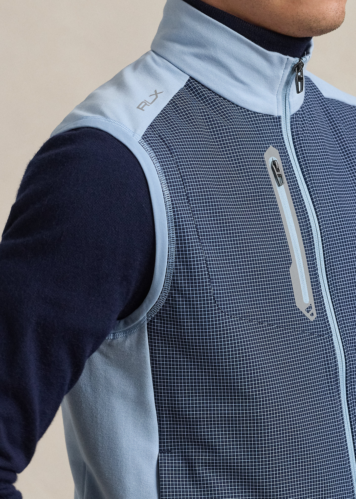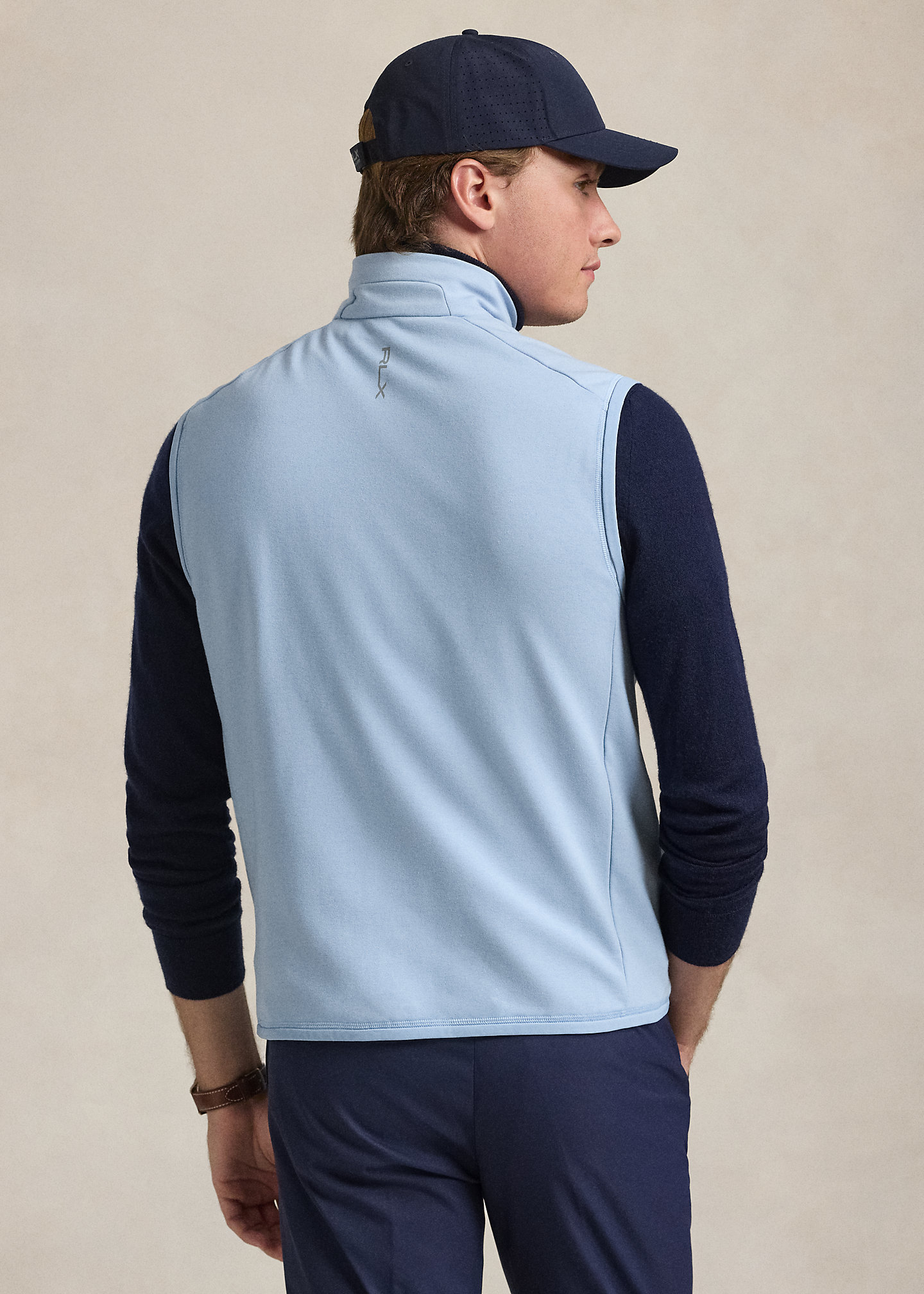 - Mockneck. Two-way full-zip front. Stretch binding at the armholes.