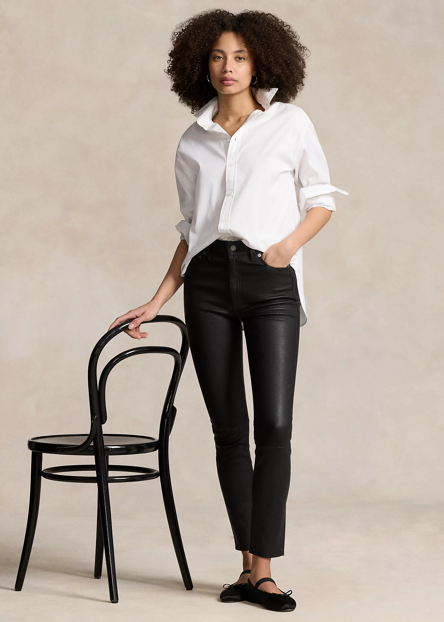- Five-pocket styling with signature "P.R.L. 67"-engraved metal rivets.