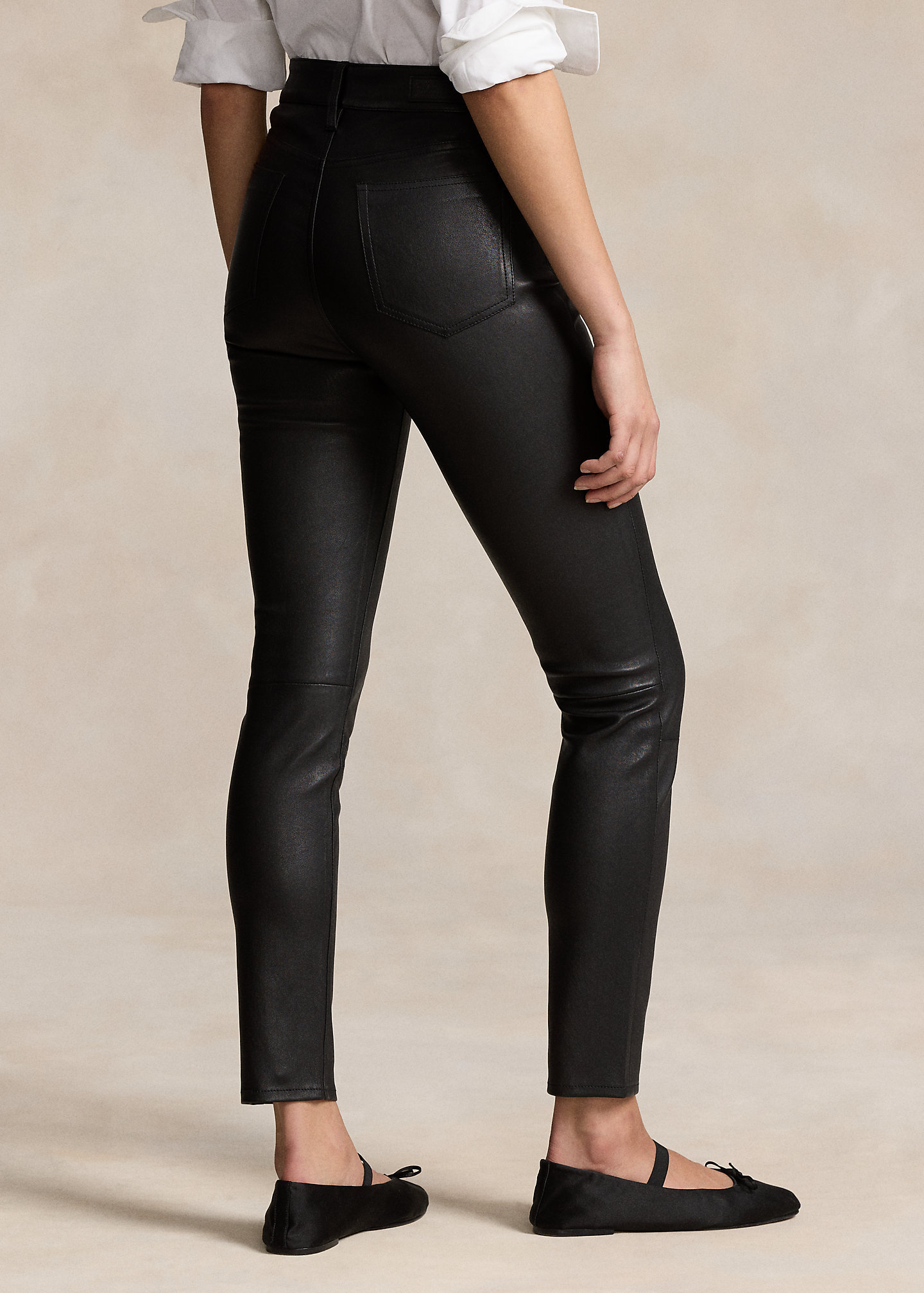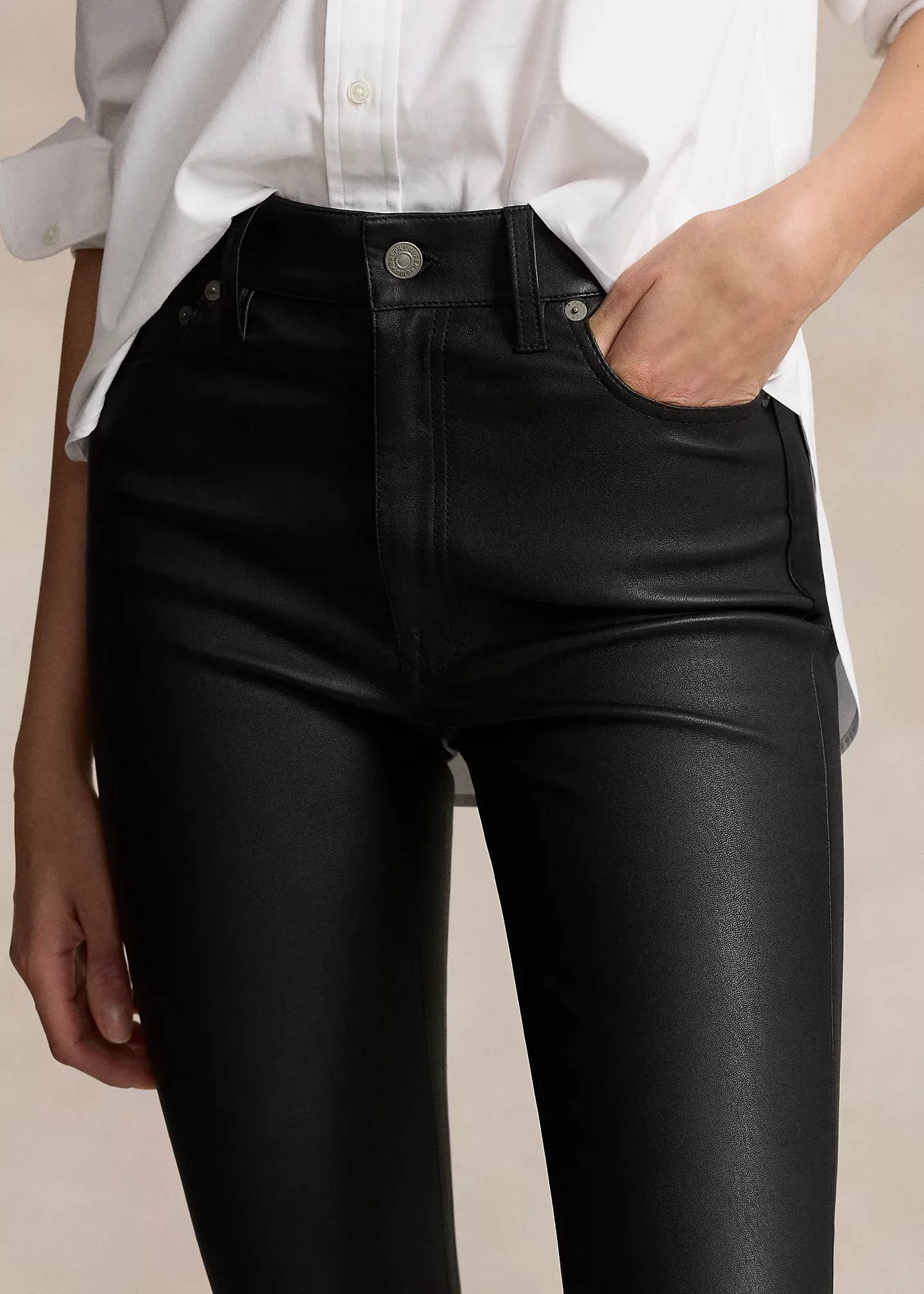 - High rise. Super-slim fit. Intended to hit at the ankle.