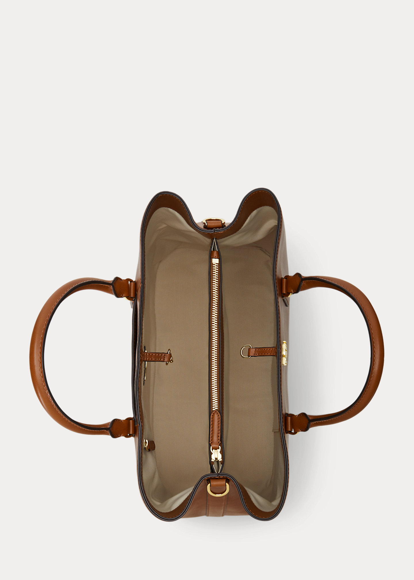 - Dog-clip closure. Polished “LRL” metal logo at the front.