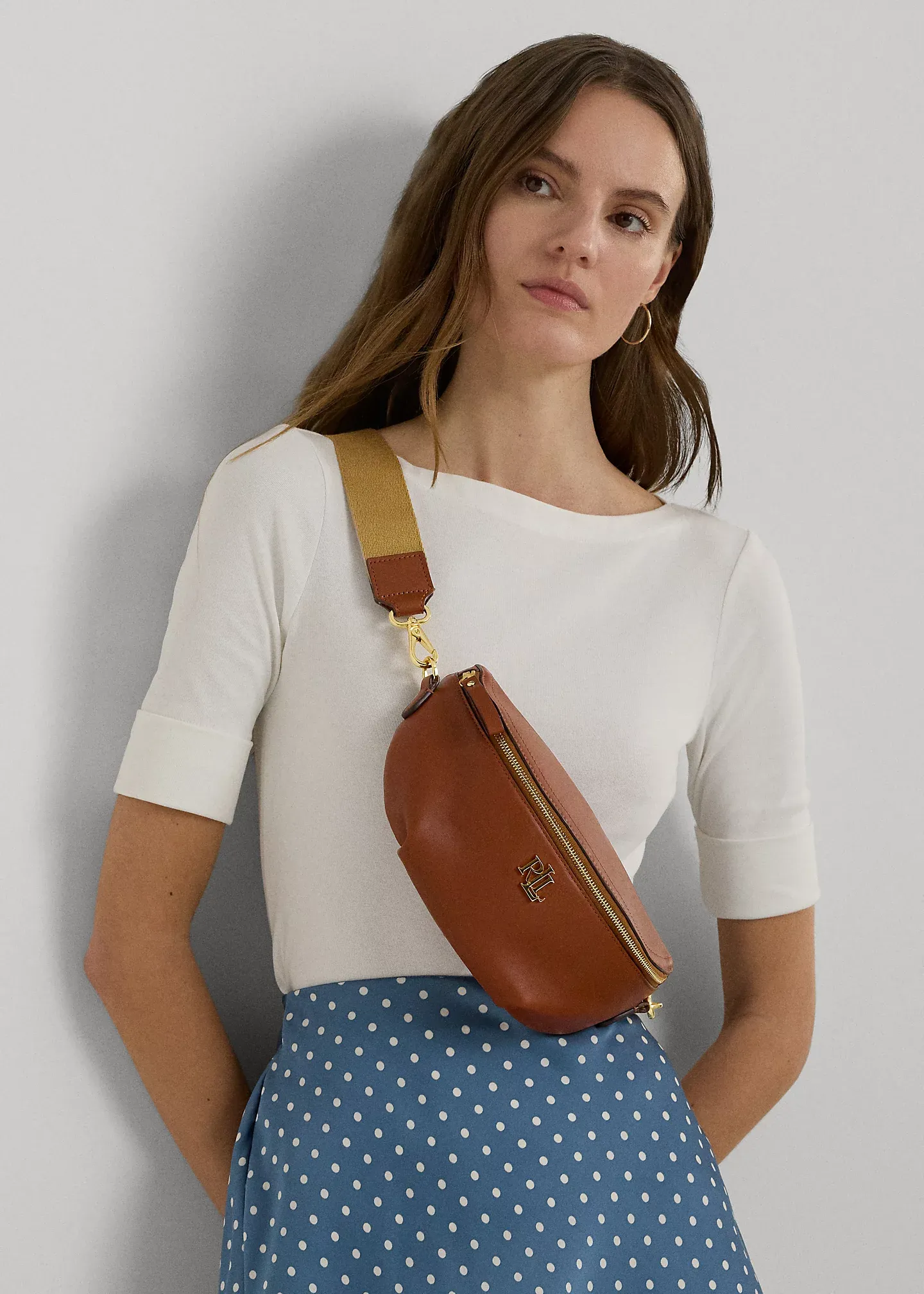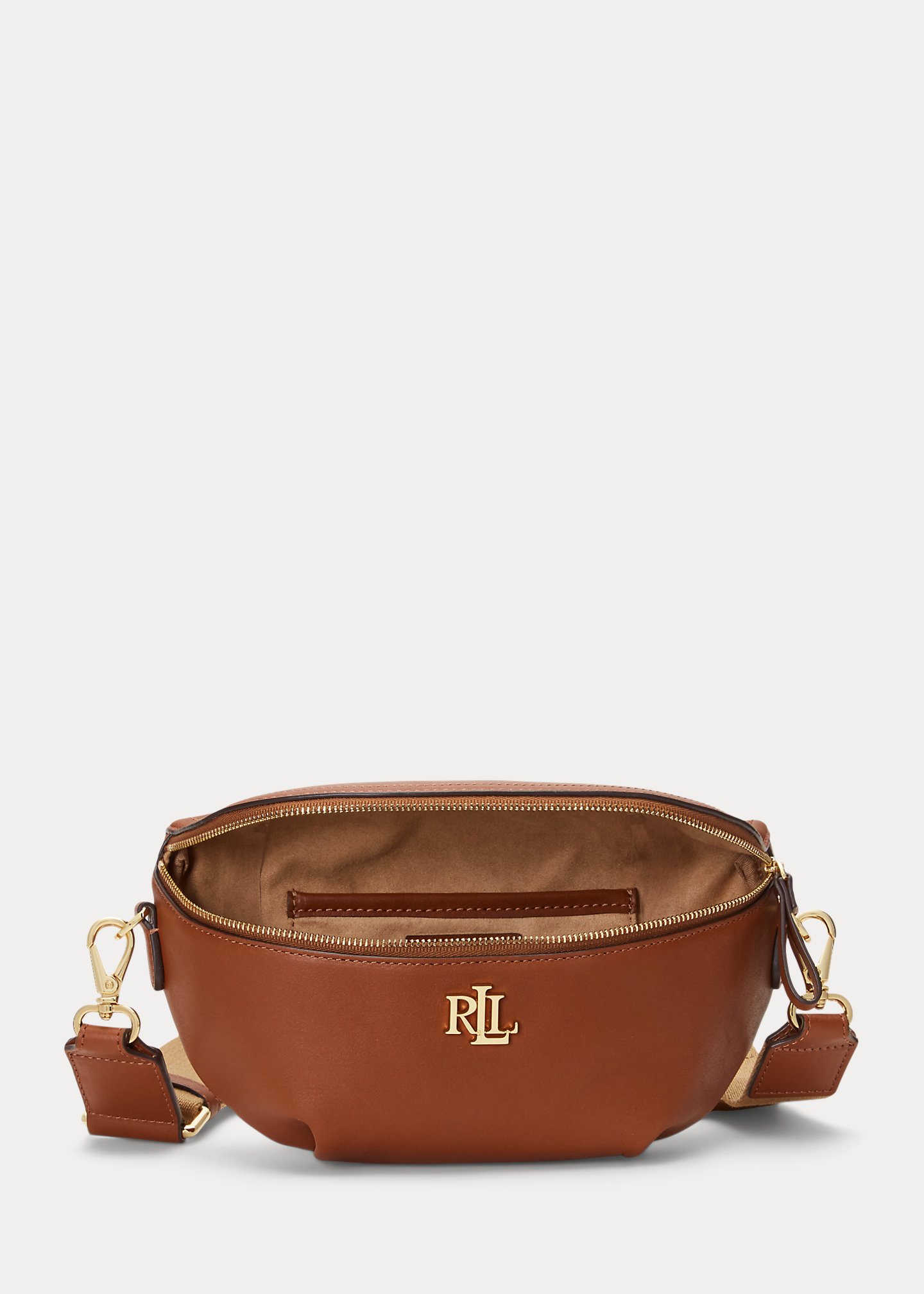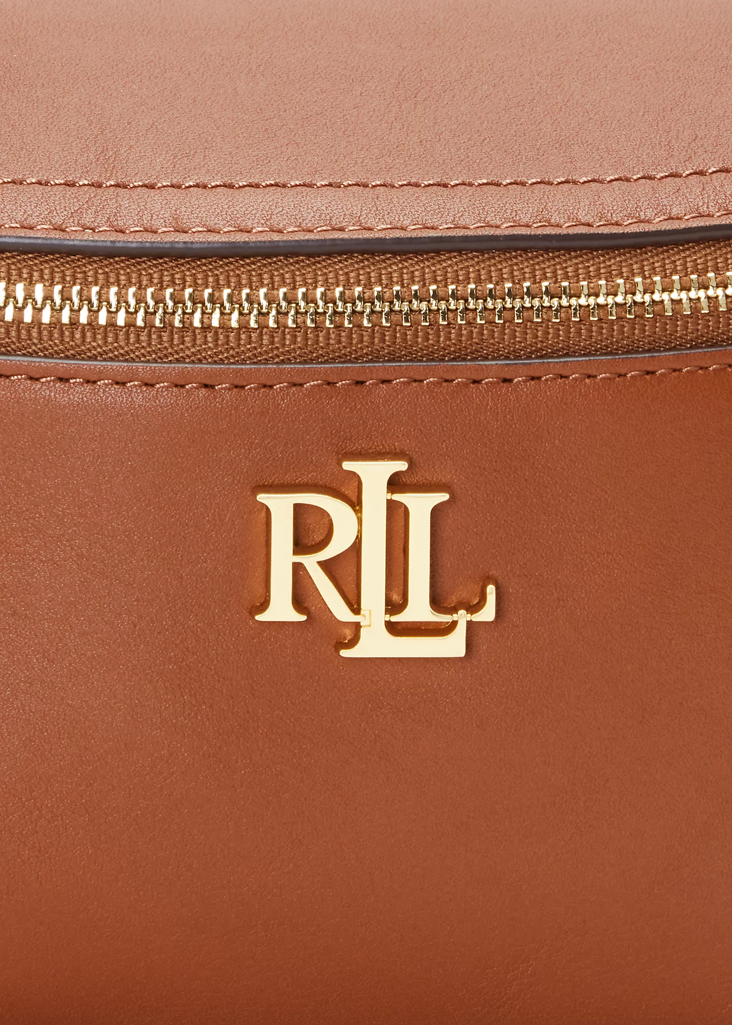 - Front zip closure. Polished “LRL” metal logo at the front. “Lauren Ralph Lauren est. 1967”–engraved metal plaque at the interior.