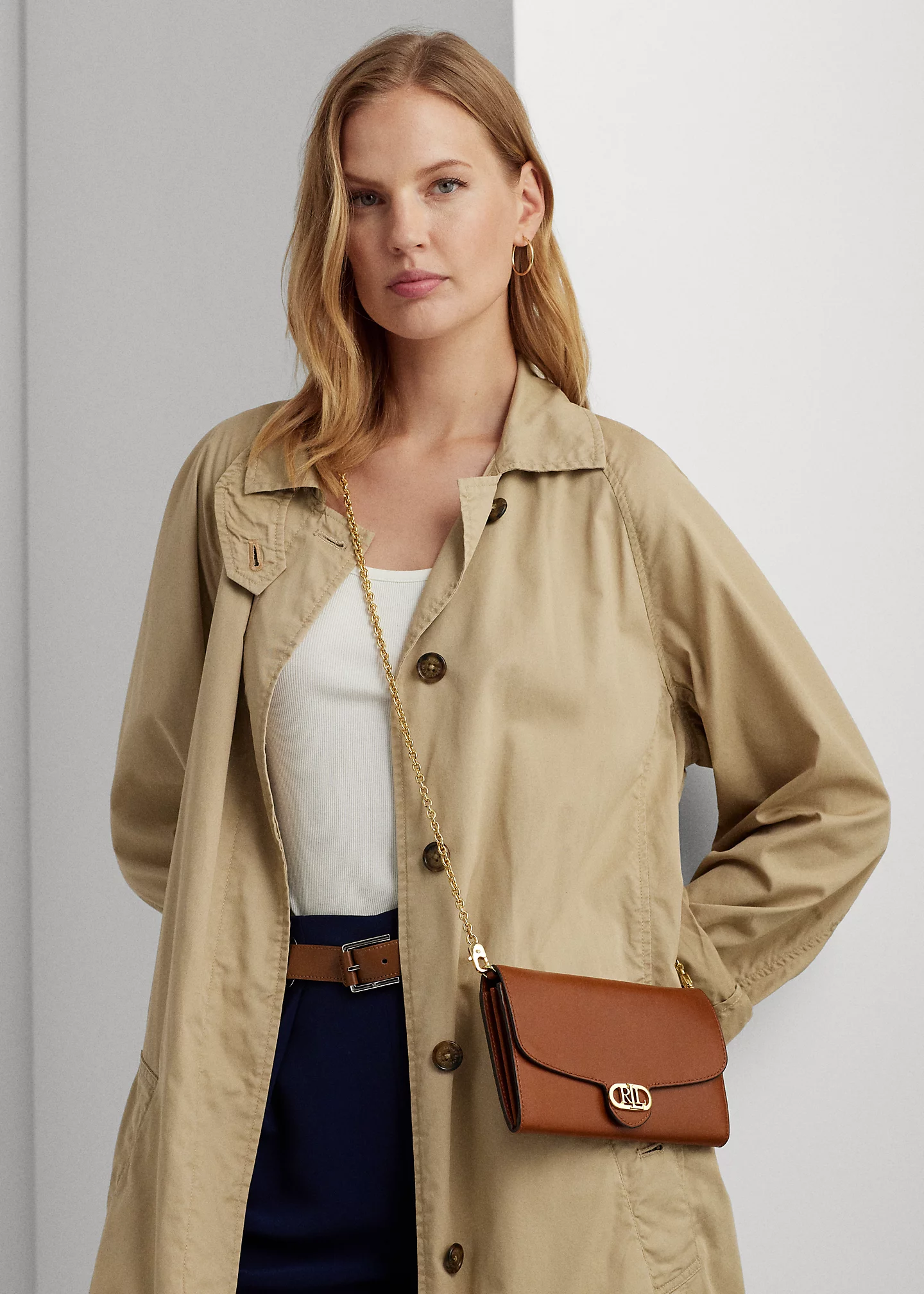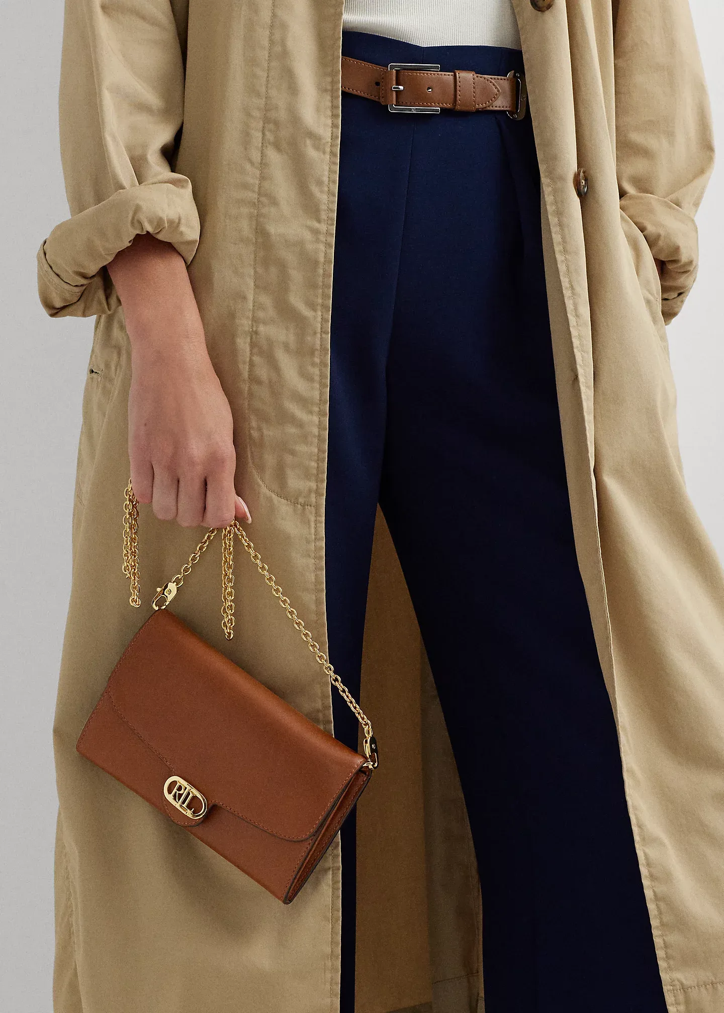- Magnetic snapped closure. Metal “LRL” hardware at the front. “Lauren Ralph Lauren” logo foil-printed at the back.
