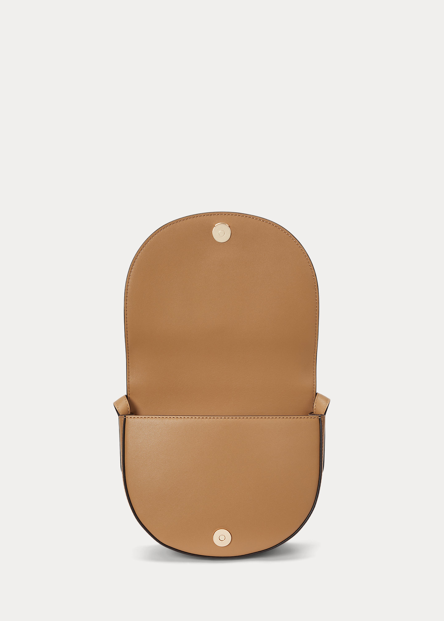 - Magnetic snapped closure. Oversize "LRL" bombé logo at the flap.