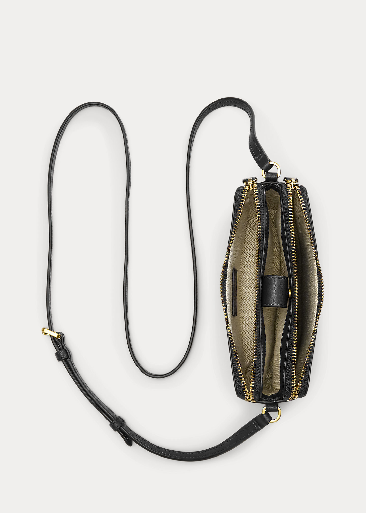- Adjustable leather crossbody strap with a 56" maximum drop.