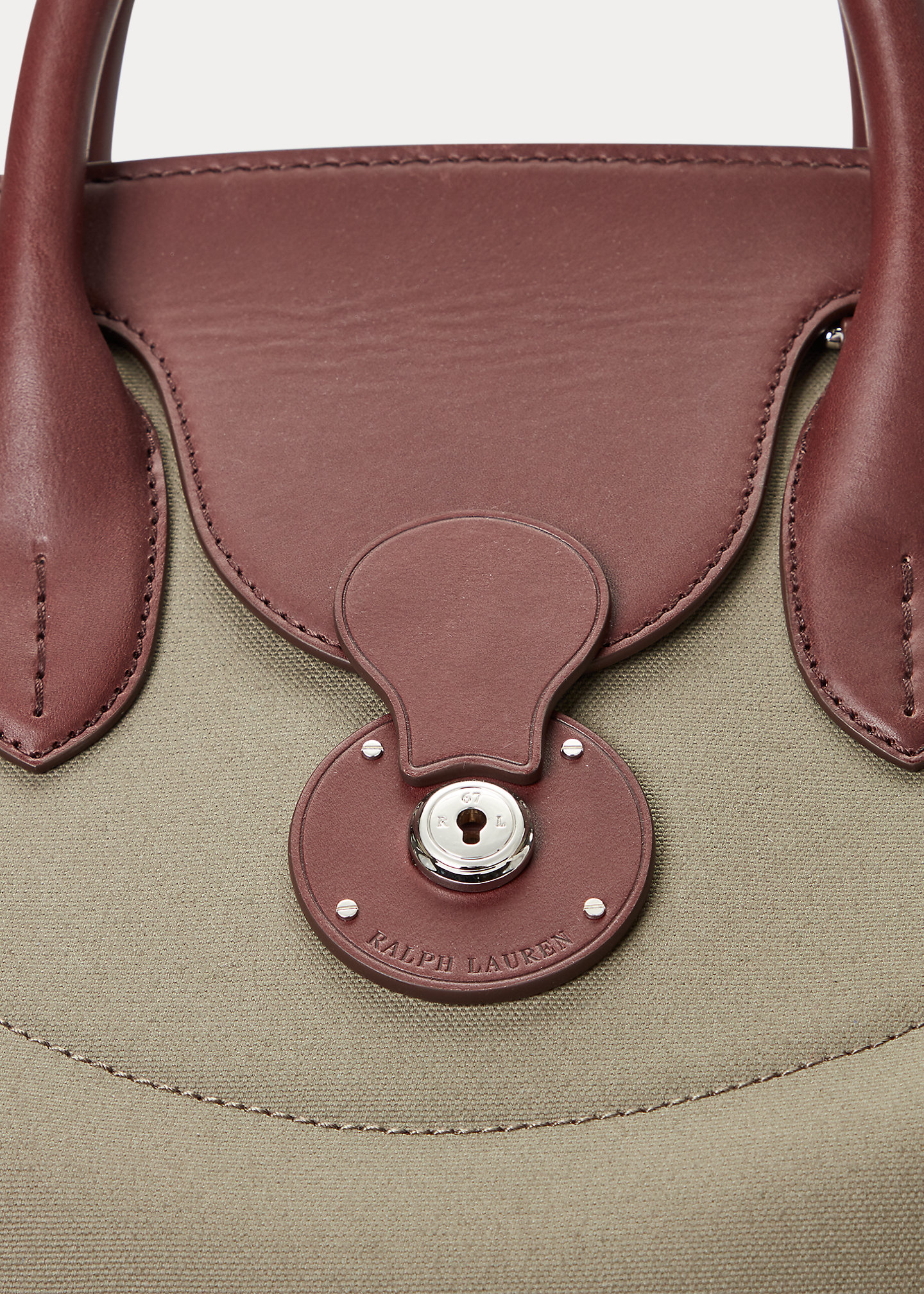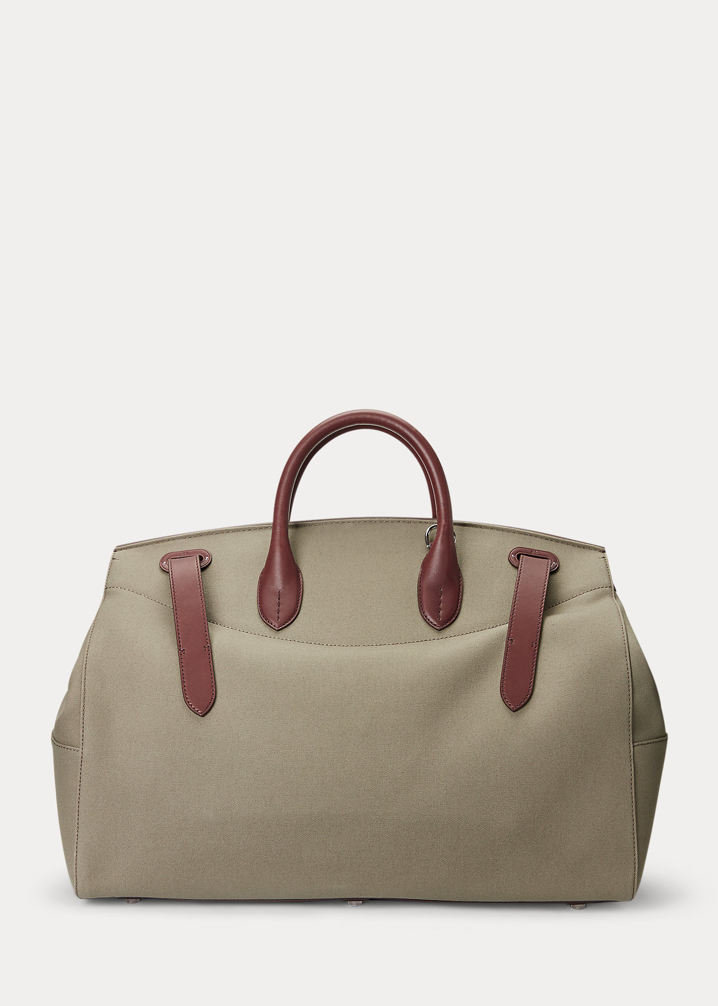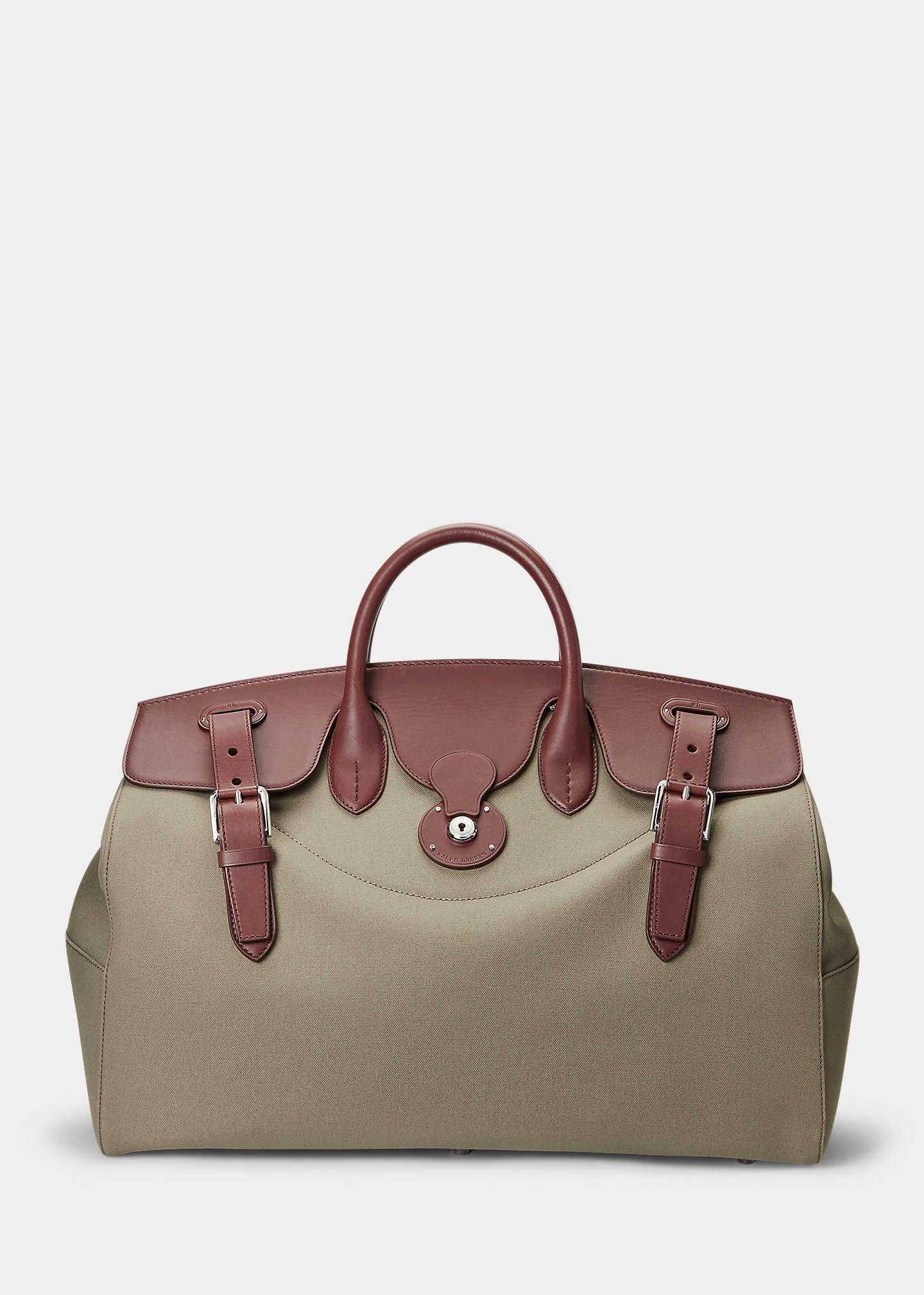 - Front flap secures with an "RL"-engraved Cooper lock. Two leather straps loop through the front and secure with buckles.