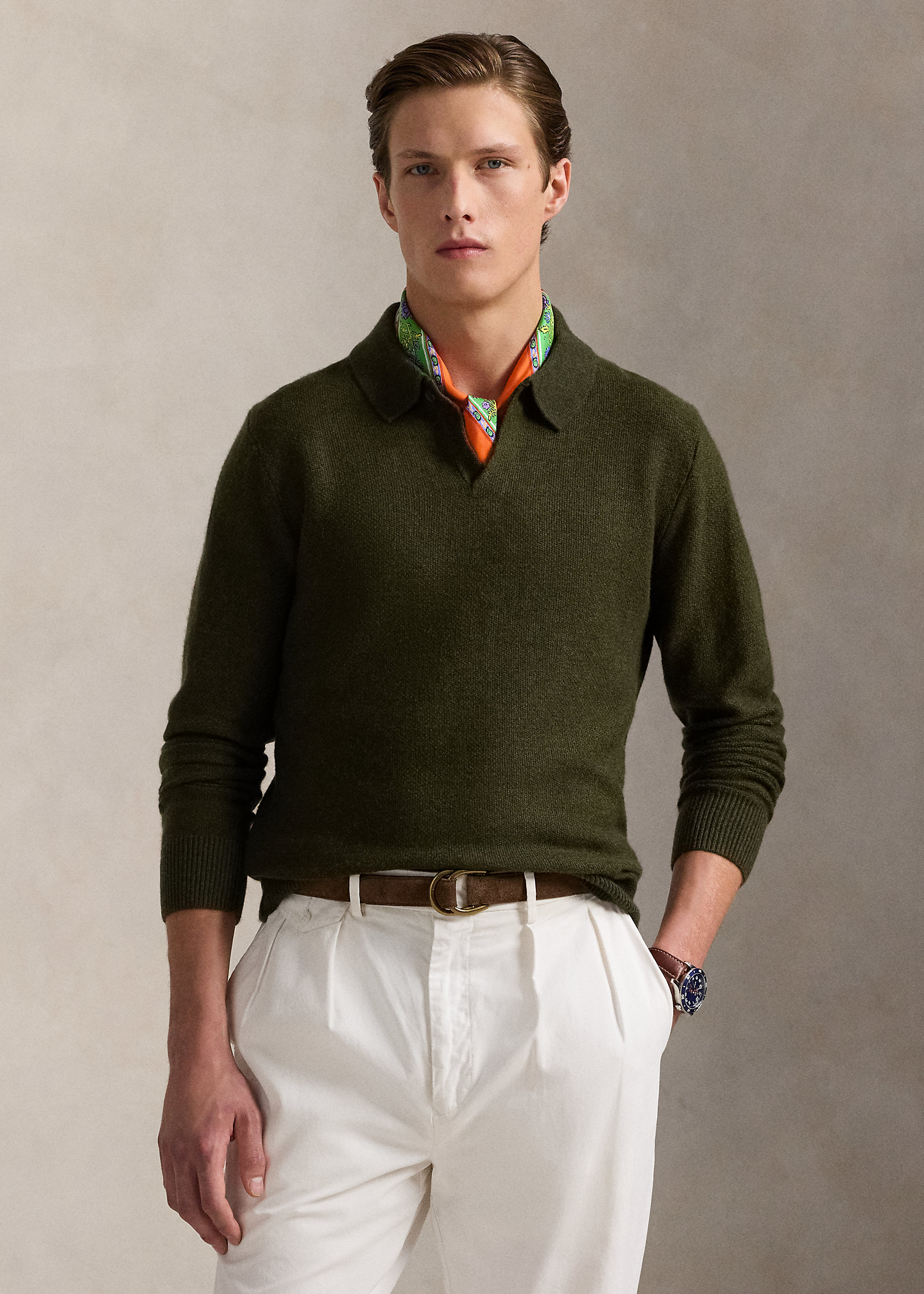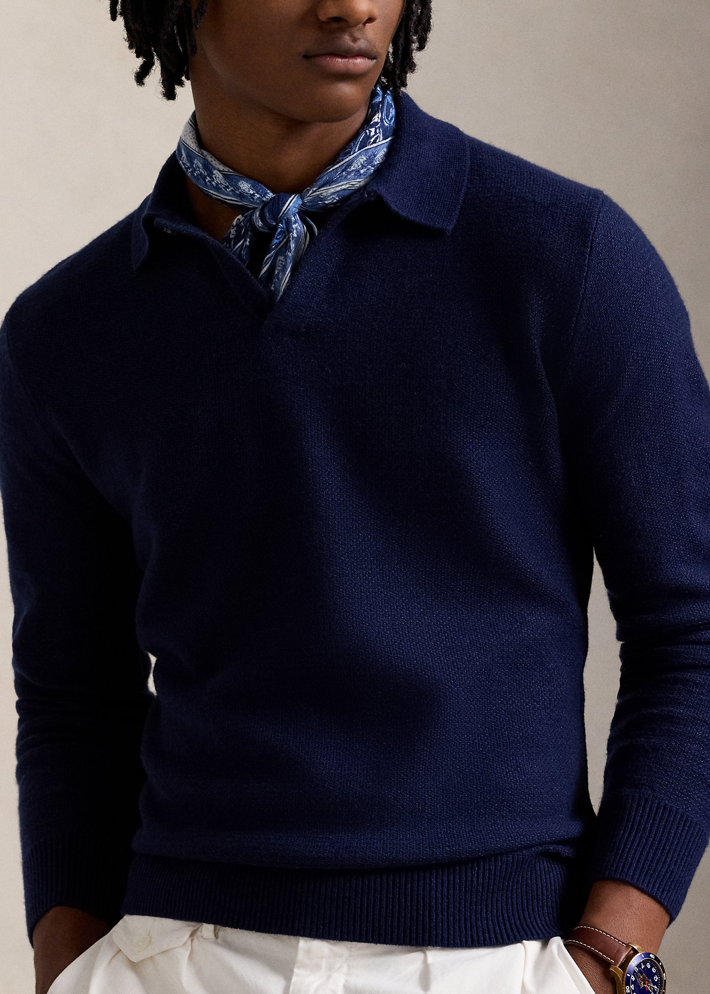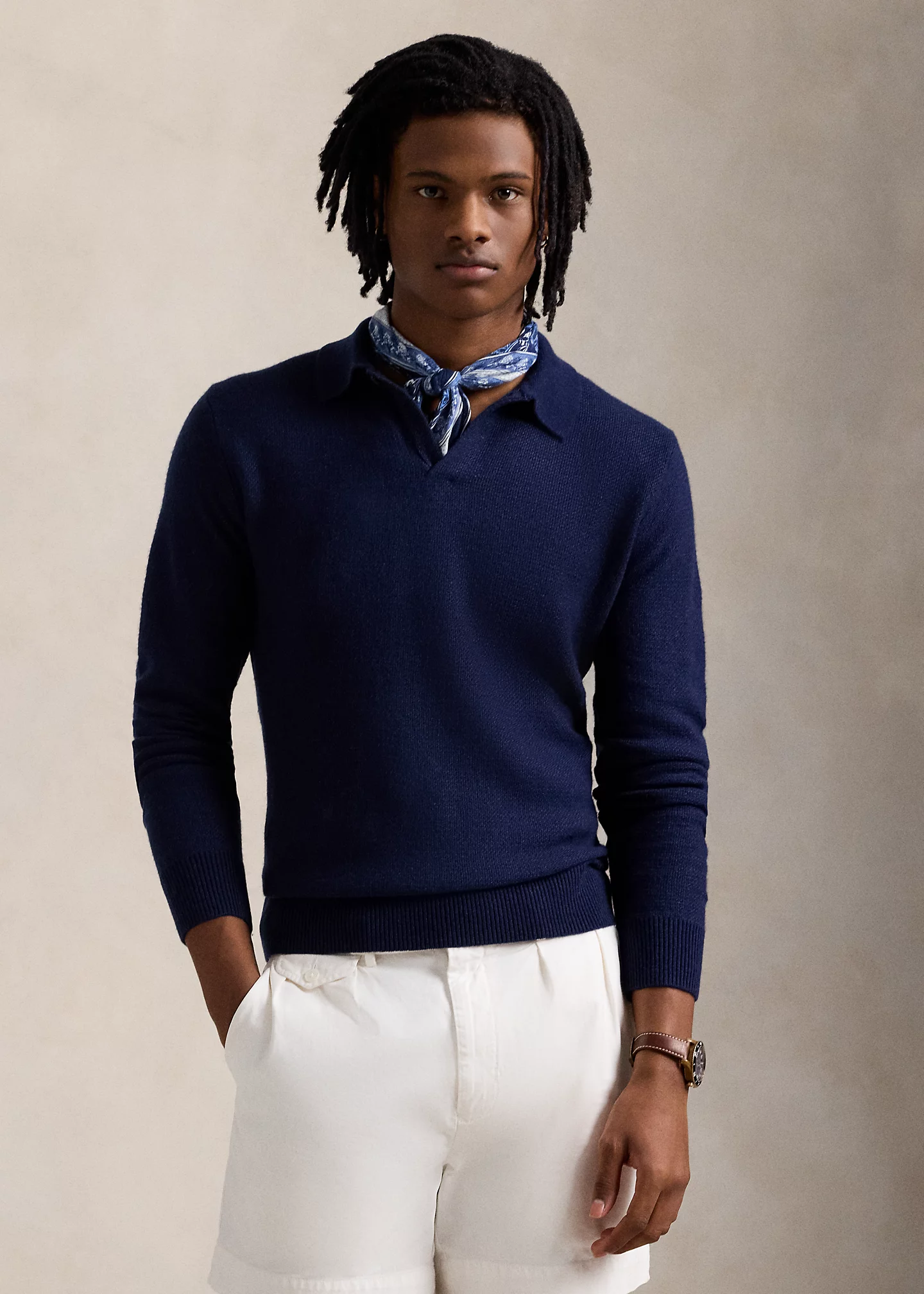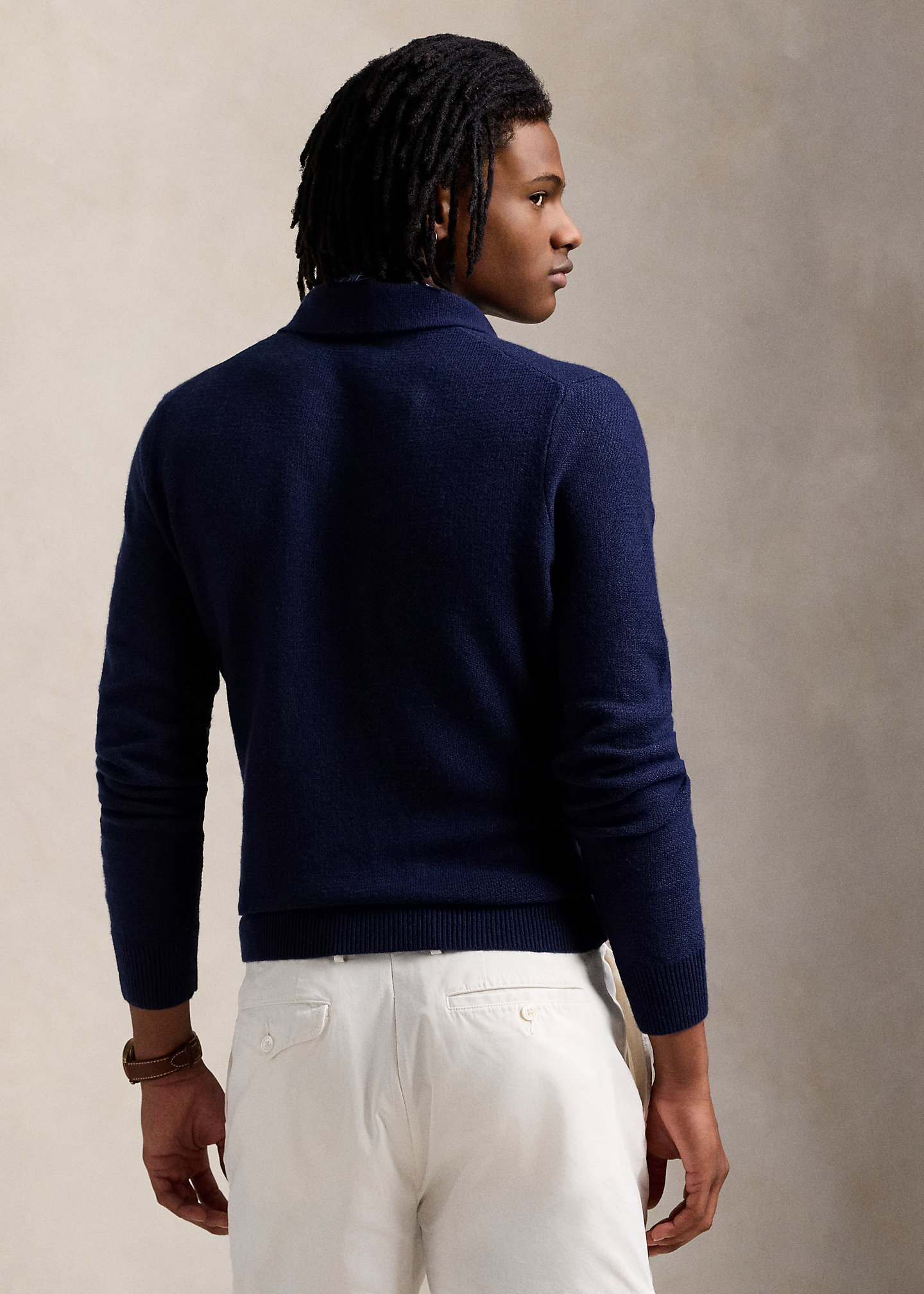 Linen-Cashmere Johnny-Collar Sweater