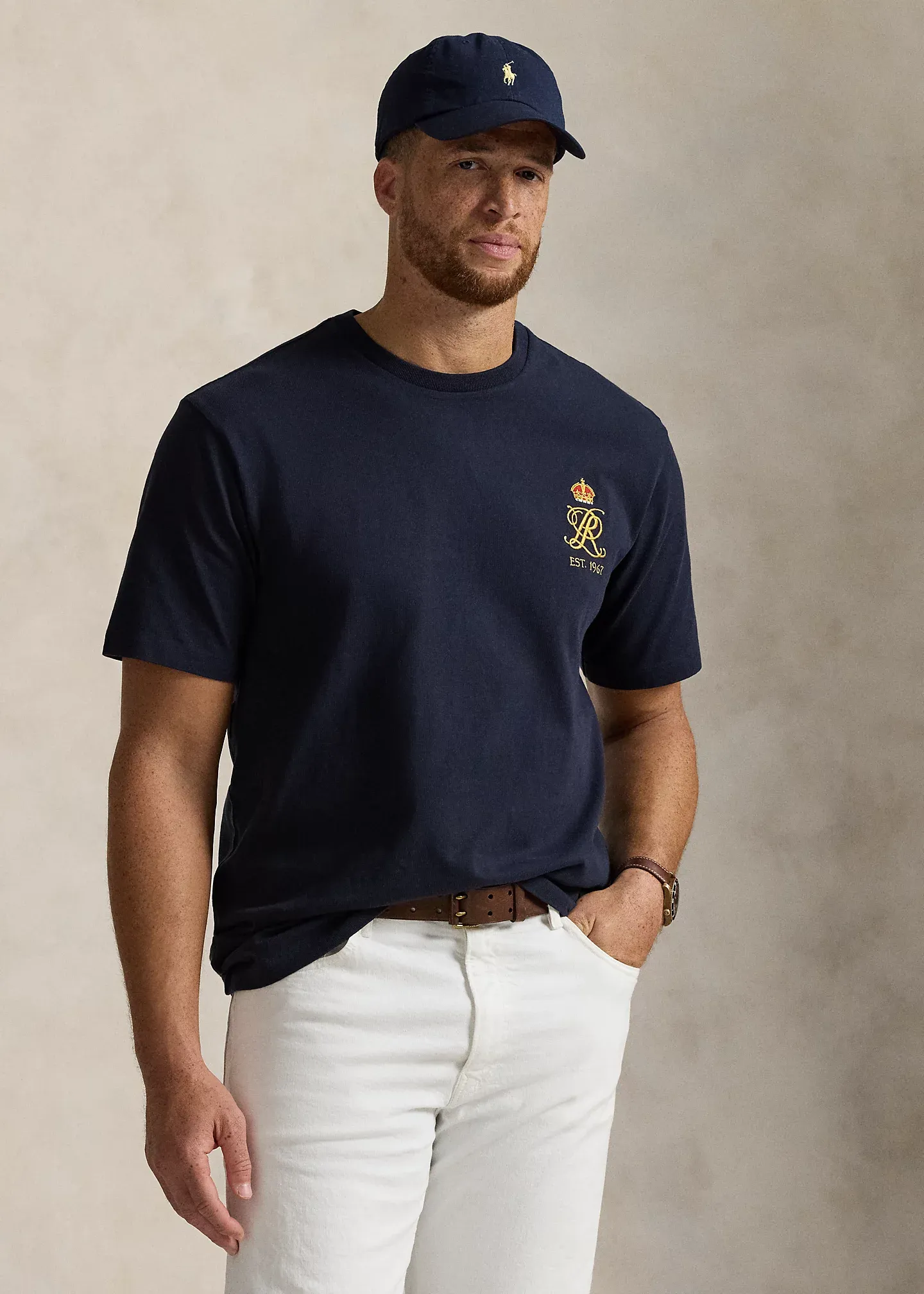 - “RL” monogram, “Est. 1967,” and a crown embroidered at the left chest.