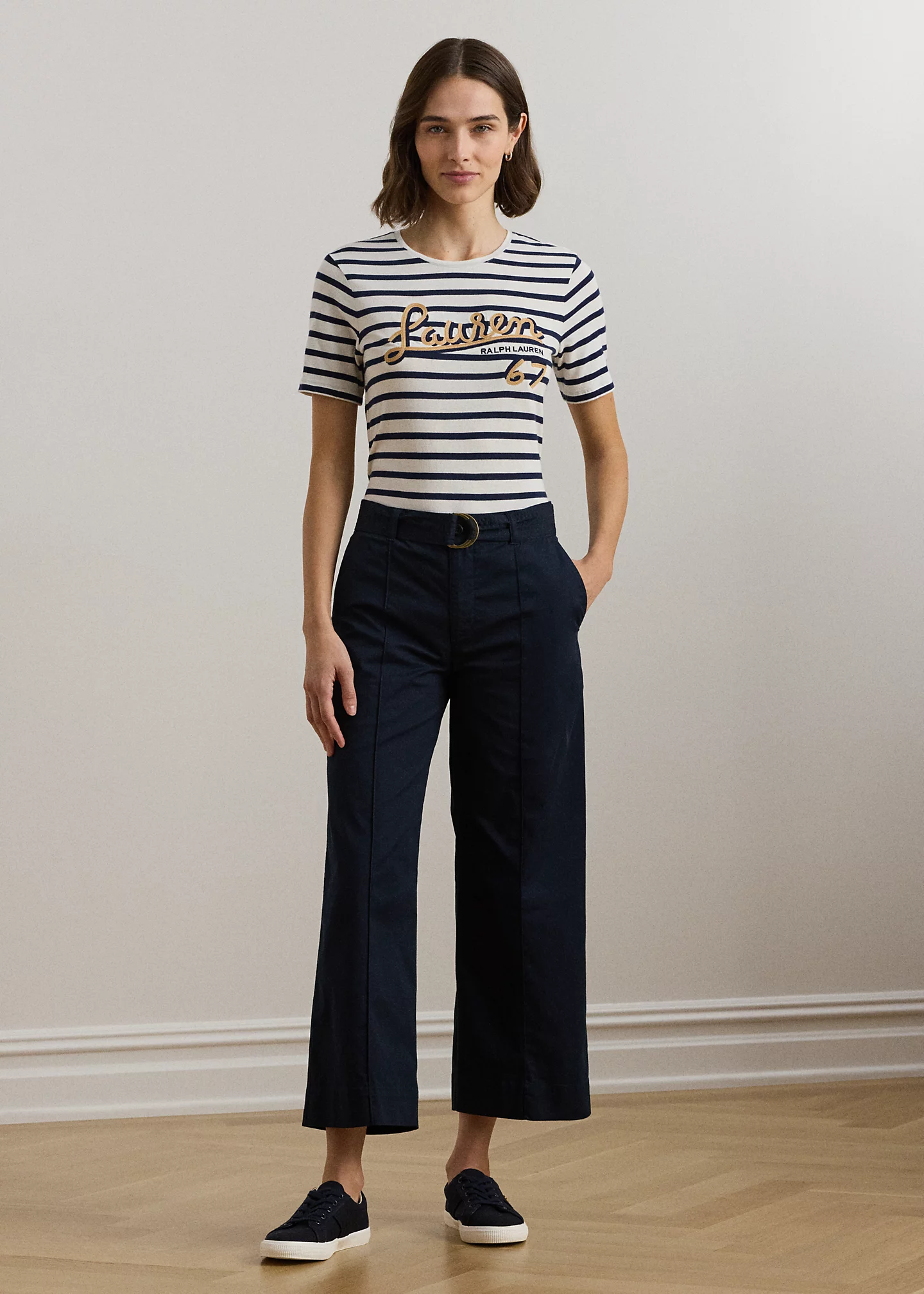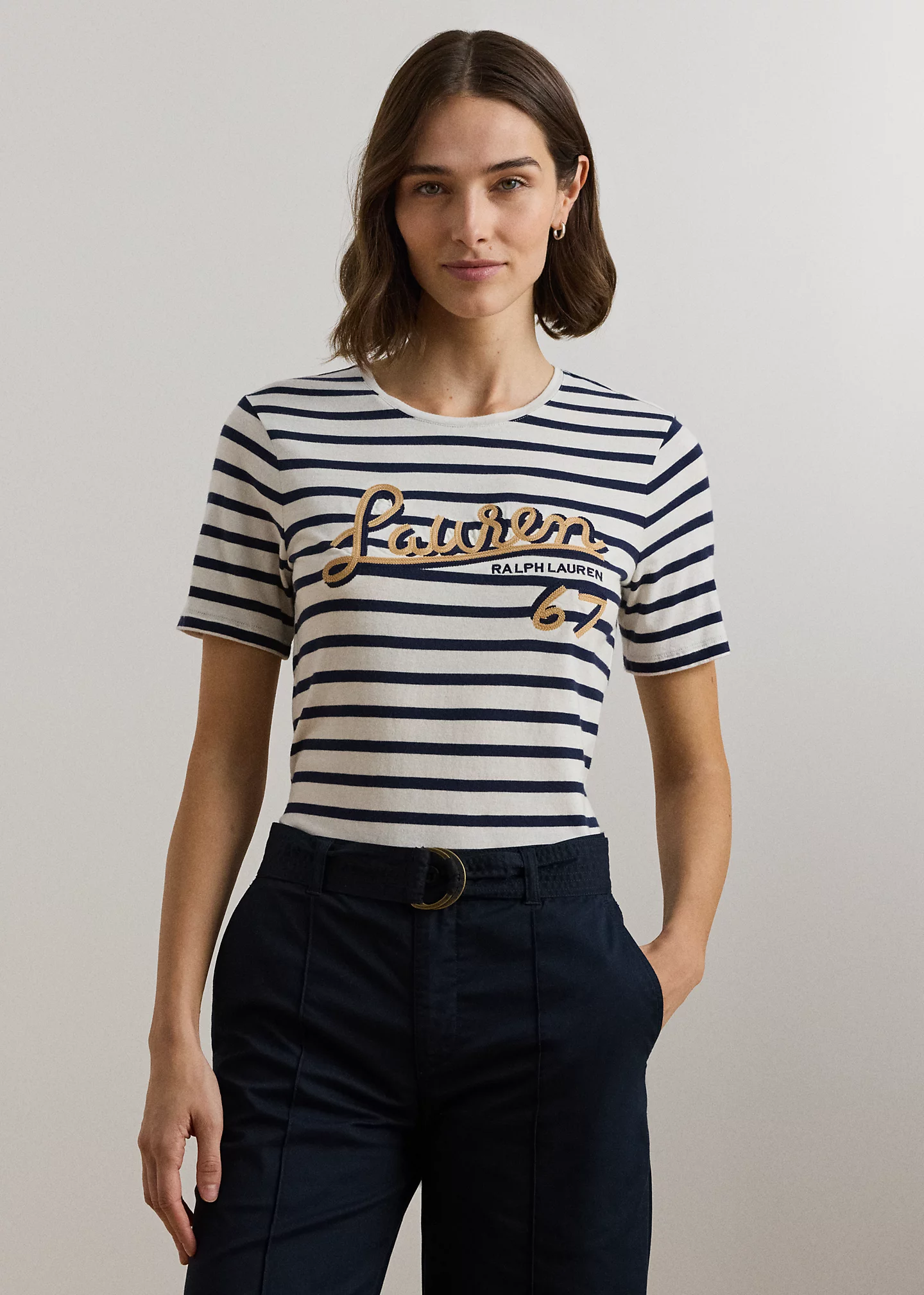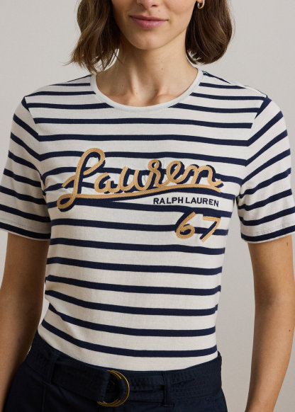 - Short sleeves. Oversize “Lauren Ralph Lauren 67”–embroidered logo at the chest.