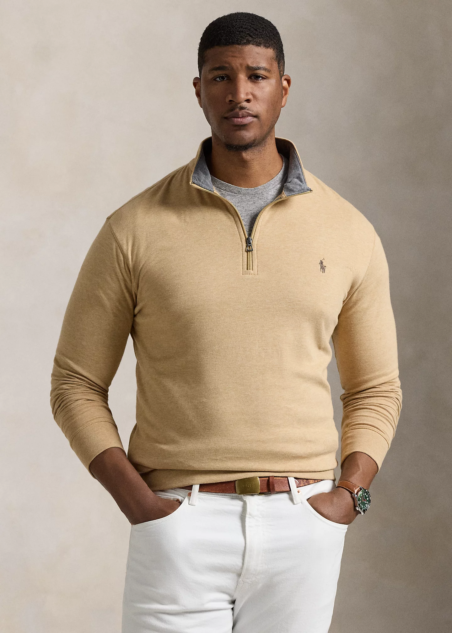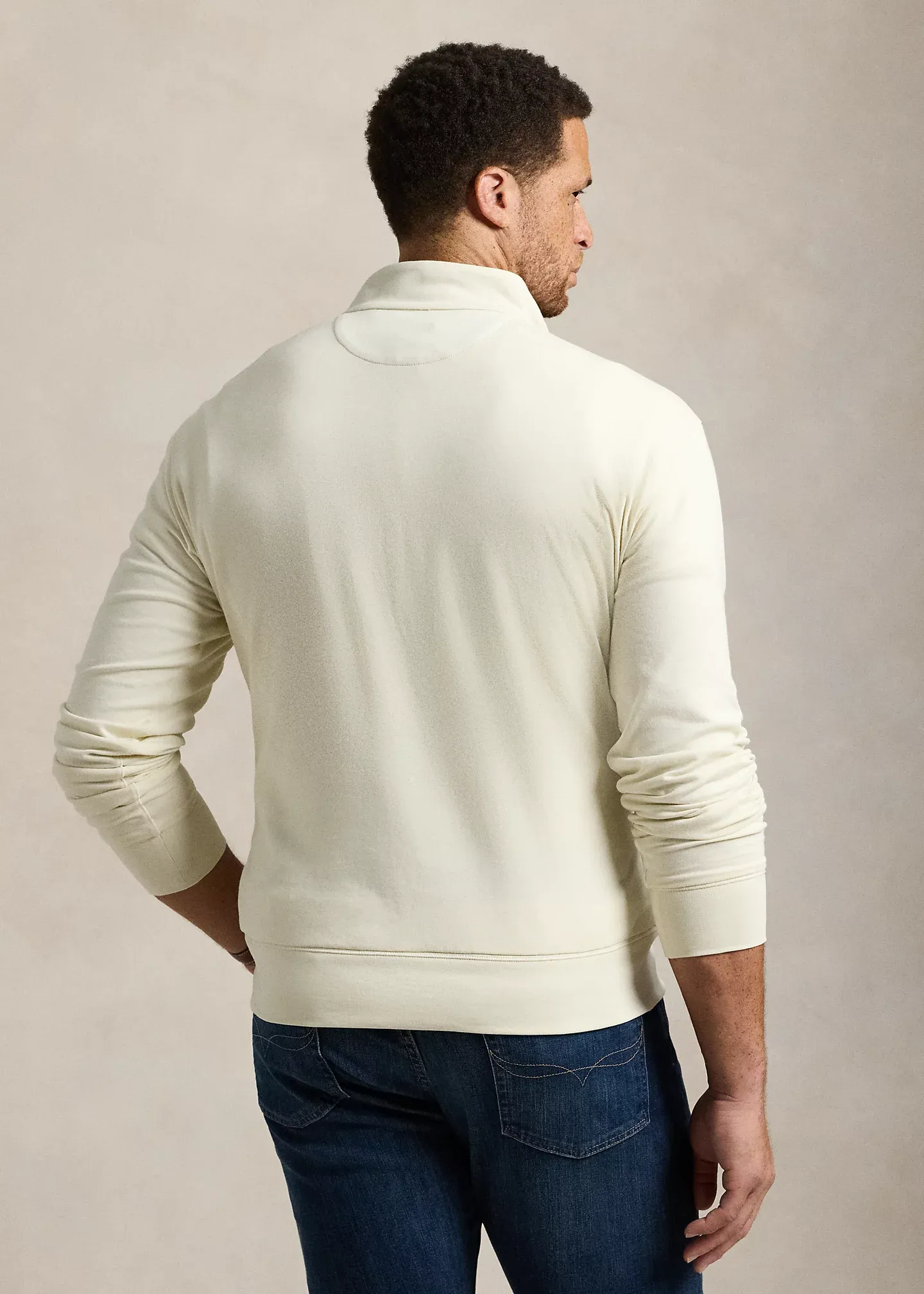 - Mockneck. Quarter-zip placket.
