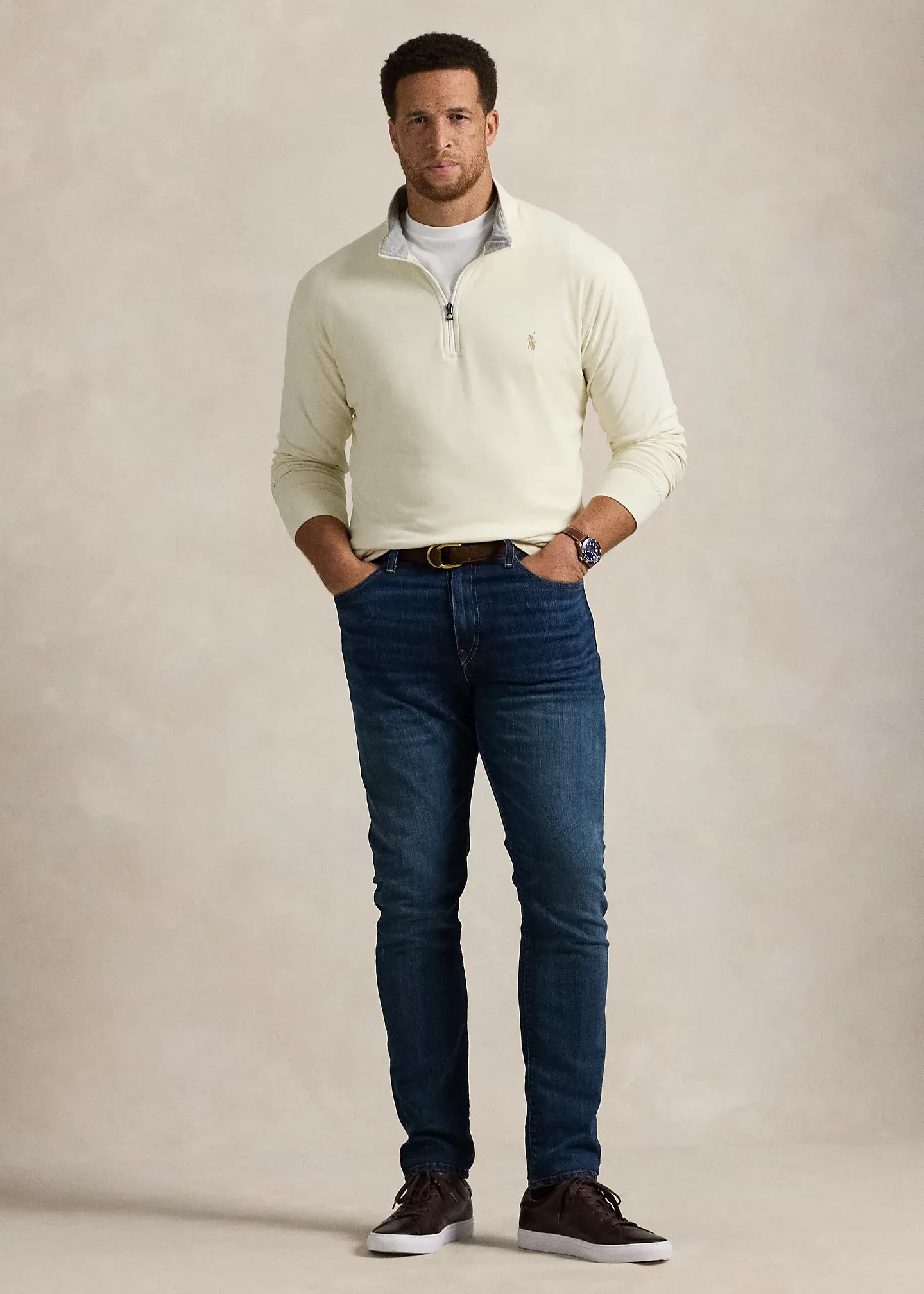 - Signature embroidered pony at the left chest.