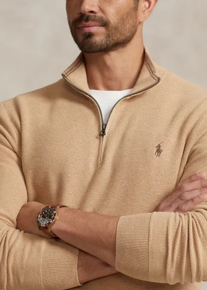 Mesh-Knit Cotton Quarter-Zip Sweater