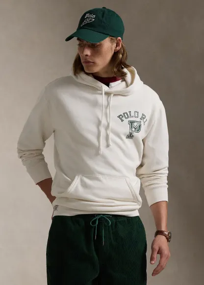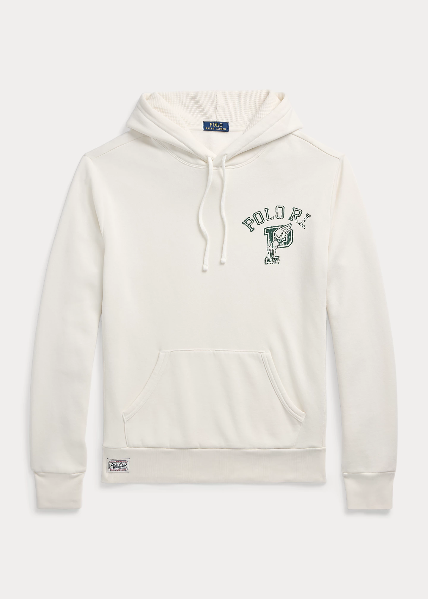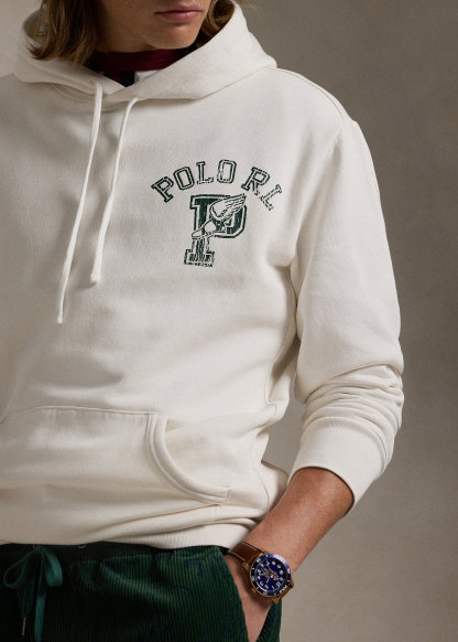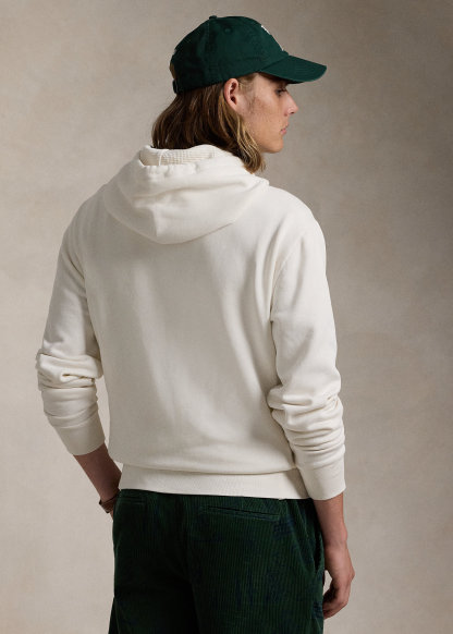 - Kangaroo pocket. Ribbed hem. “Polo RL” label at the right hem.