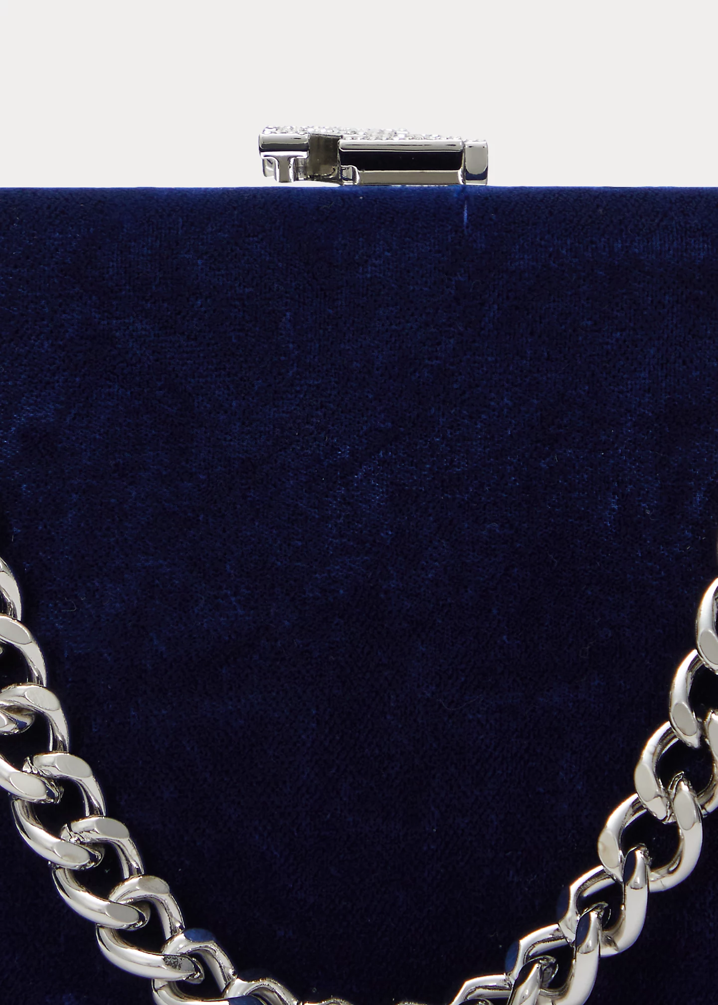 - Convertible chain strap with a 5" drop can be stored inside the bag.
