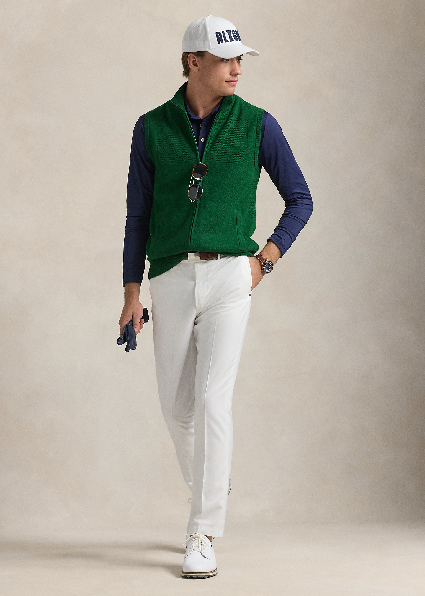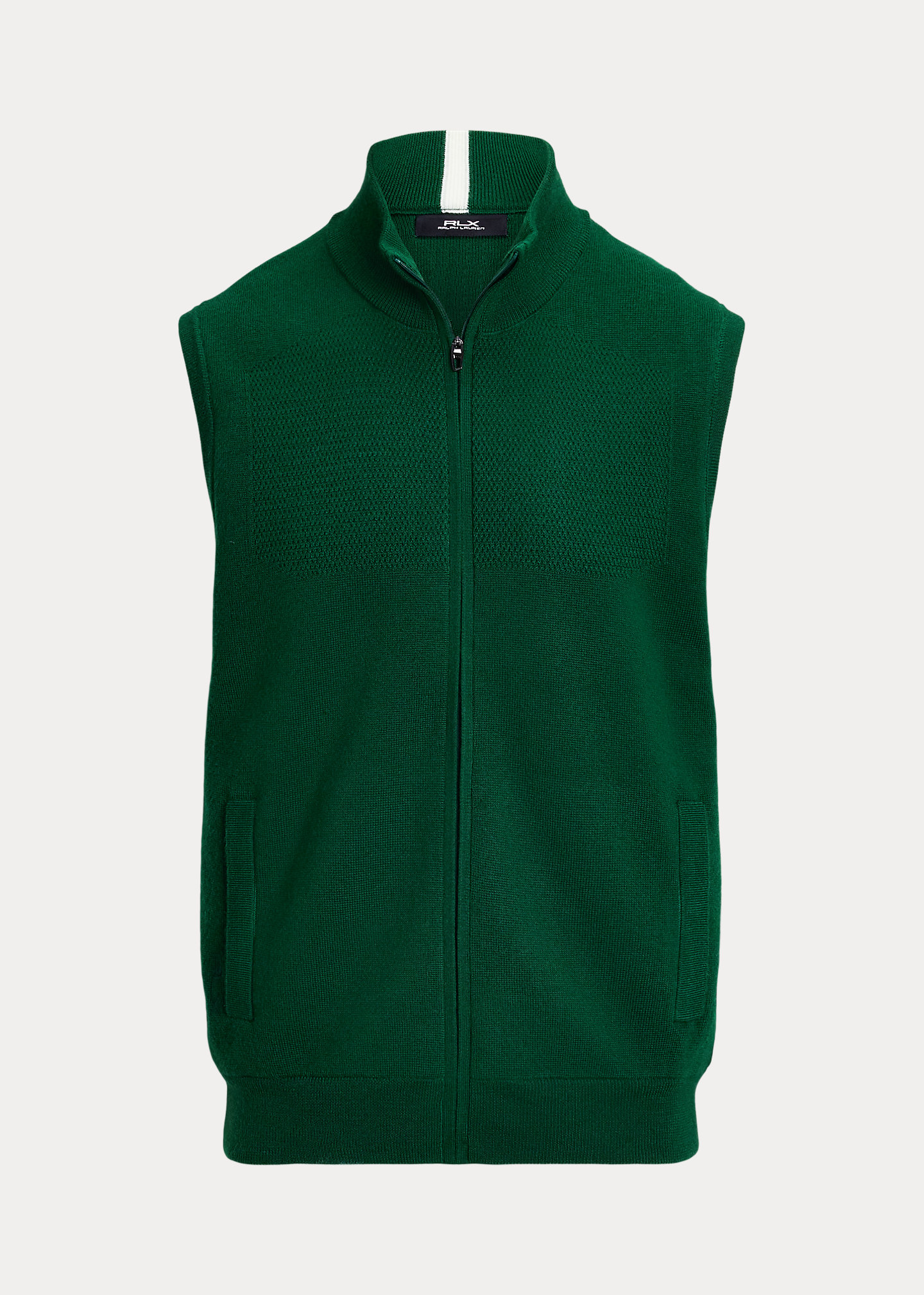 - “RLX” logo embroidered along right pocket and knit at the center back.
