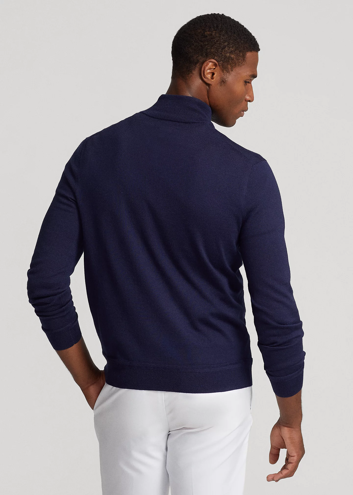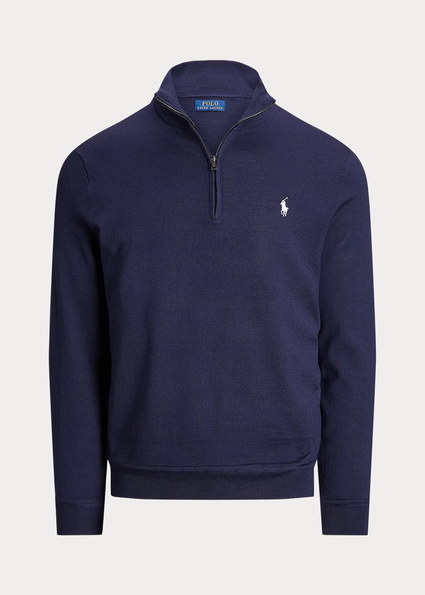 - Rib-knit mockneck. Quarter-zip placket. Long sleeves with rib-knit cuffs. Rib-knit hem.
