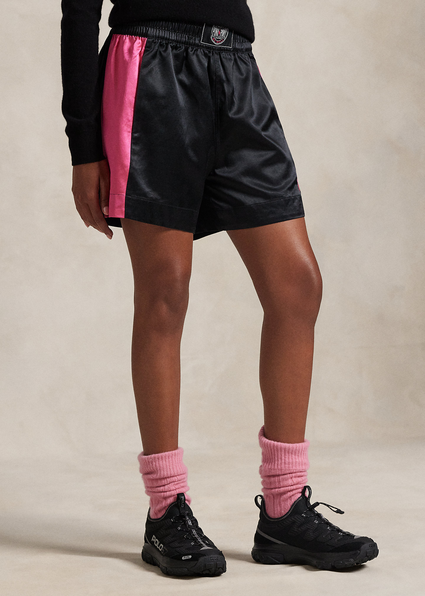 - Elastic waistband with a “Pink Pony Ralph Lauren Live Well Be Well” label with our signature Pony at the front. Side on-seam pockets. Contrasting side panels. Signature embroidered Pony at the left hem.