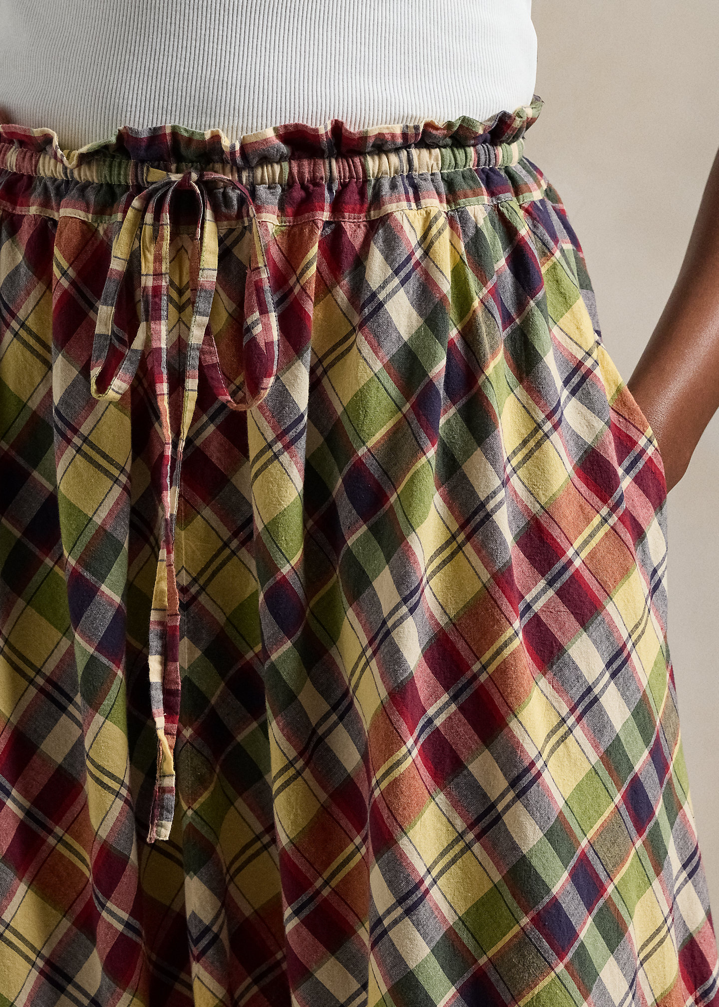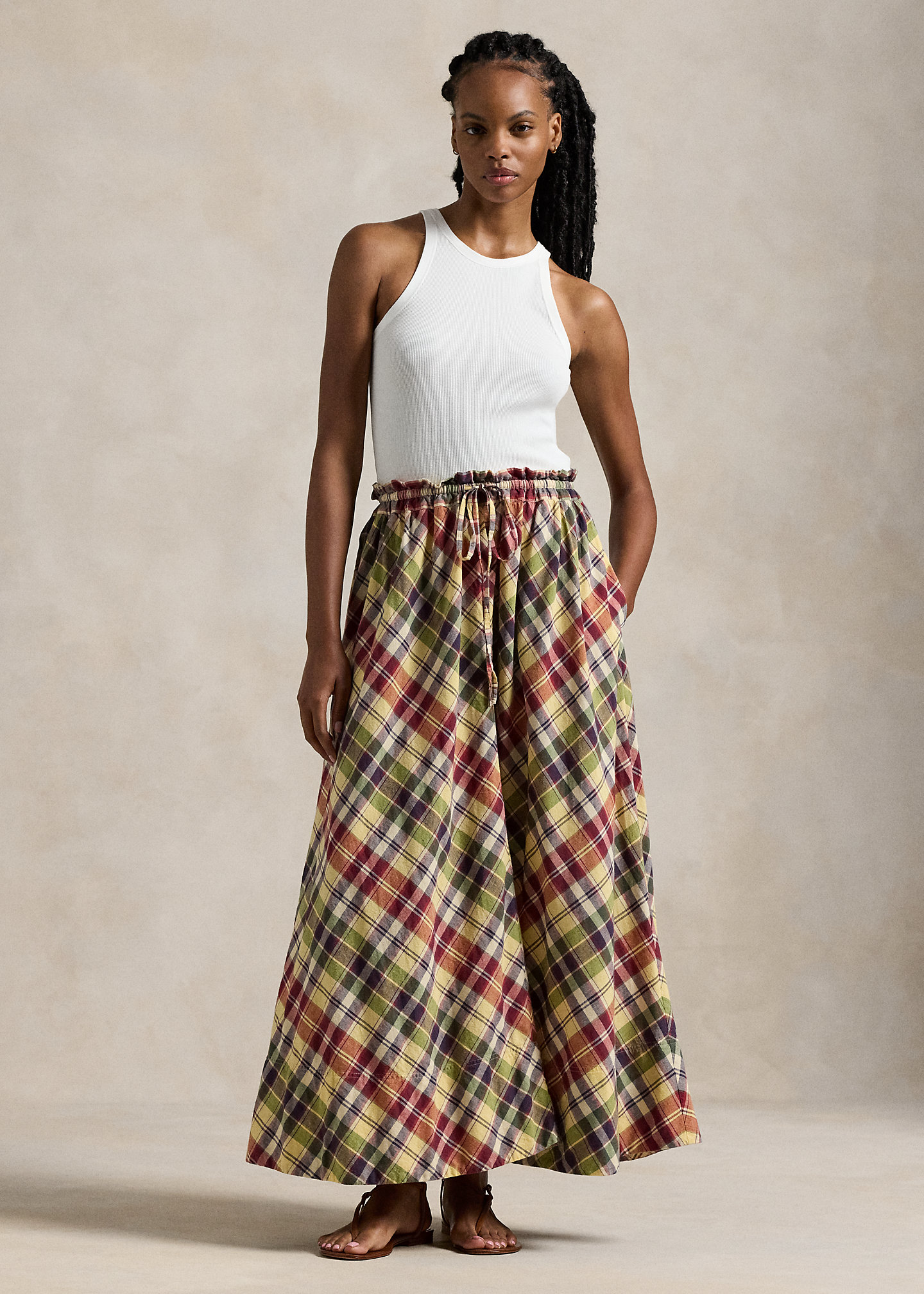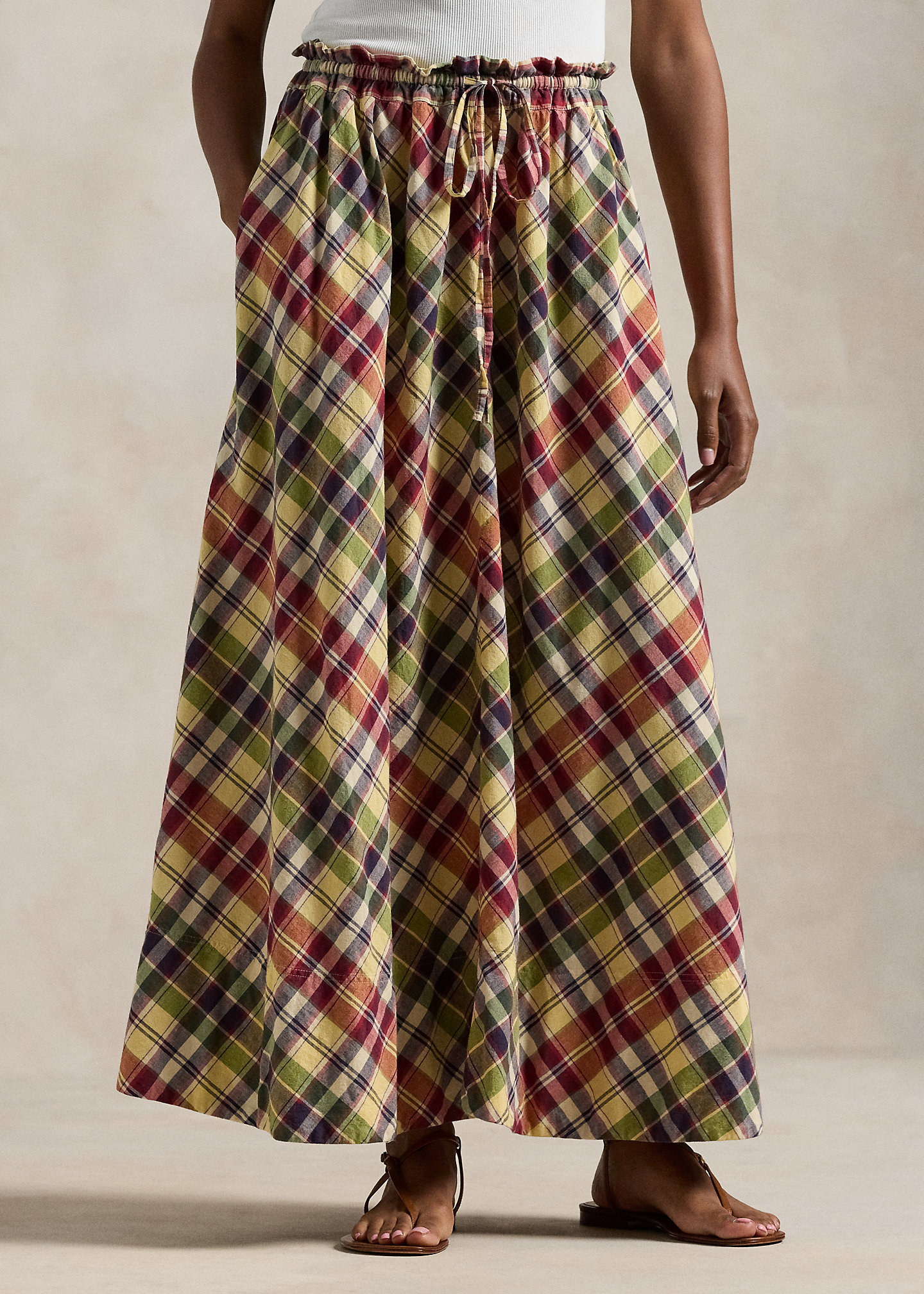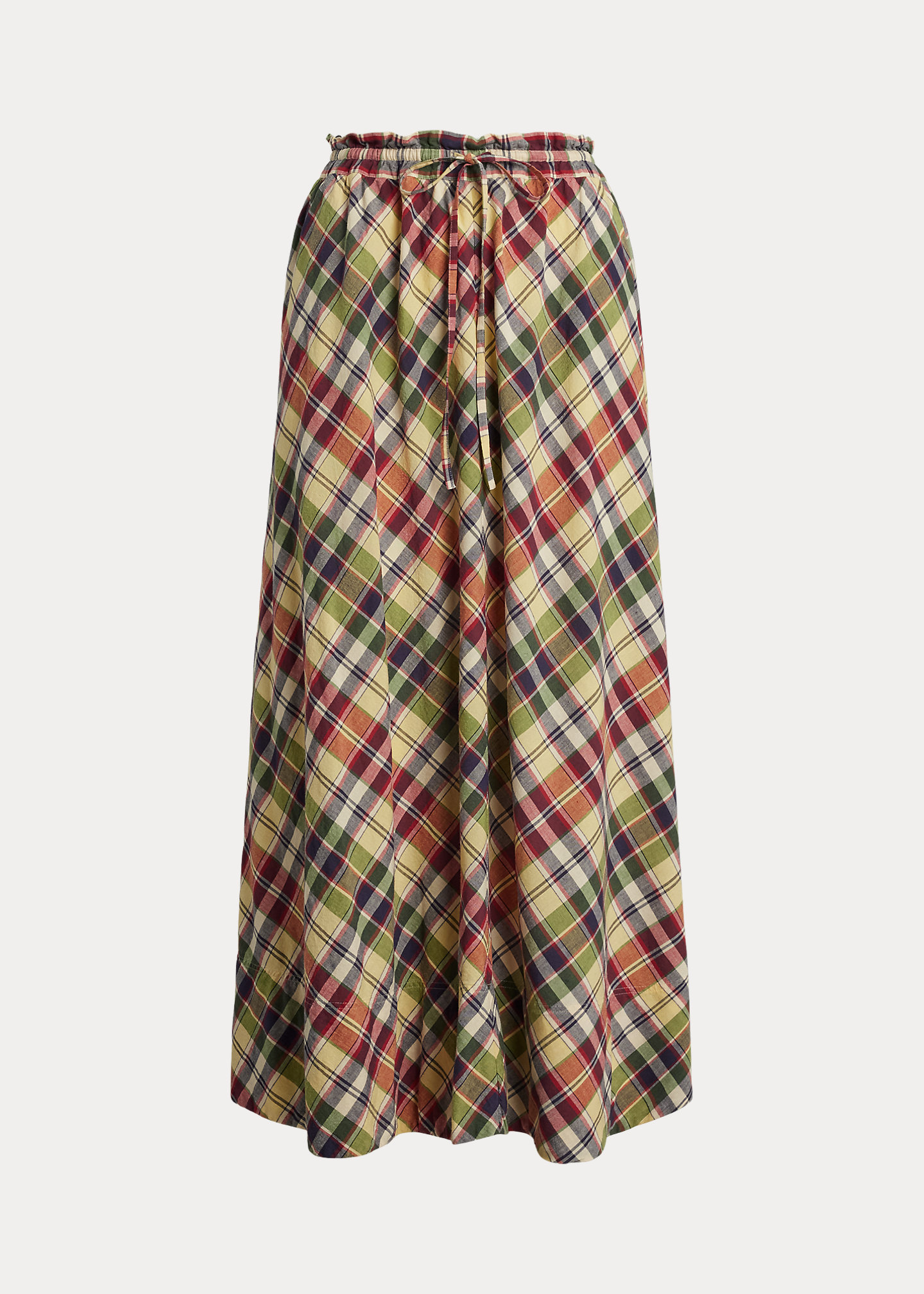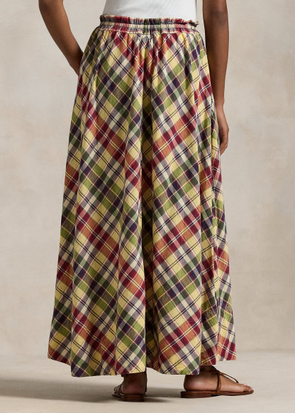 Plaid Cotton Drawstring Maxiskirt