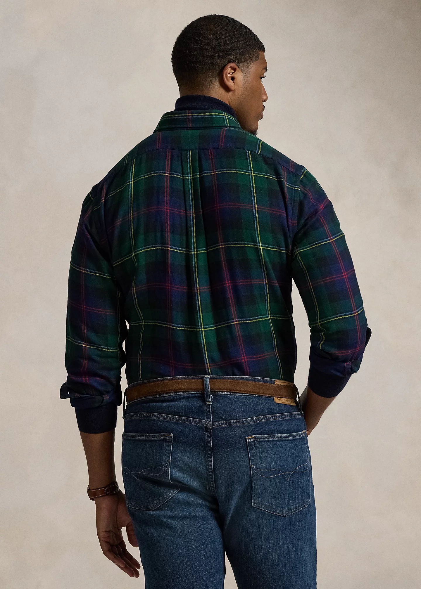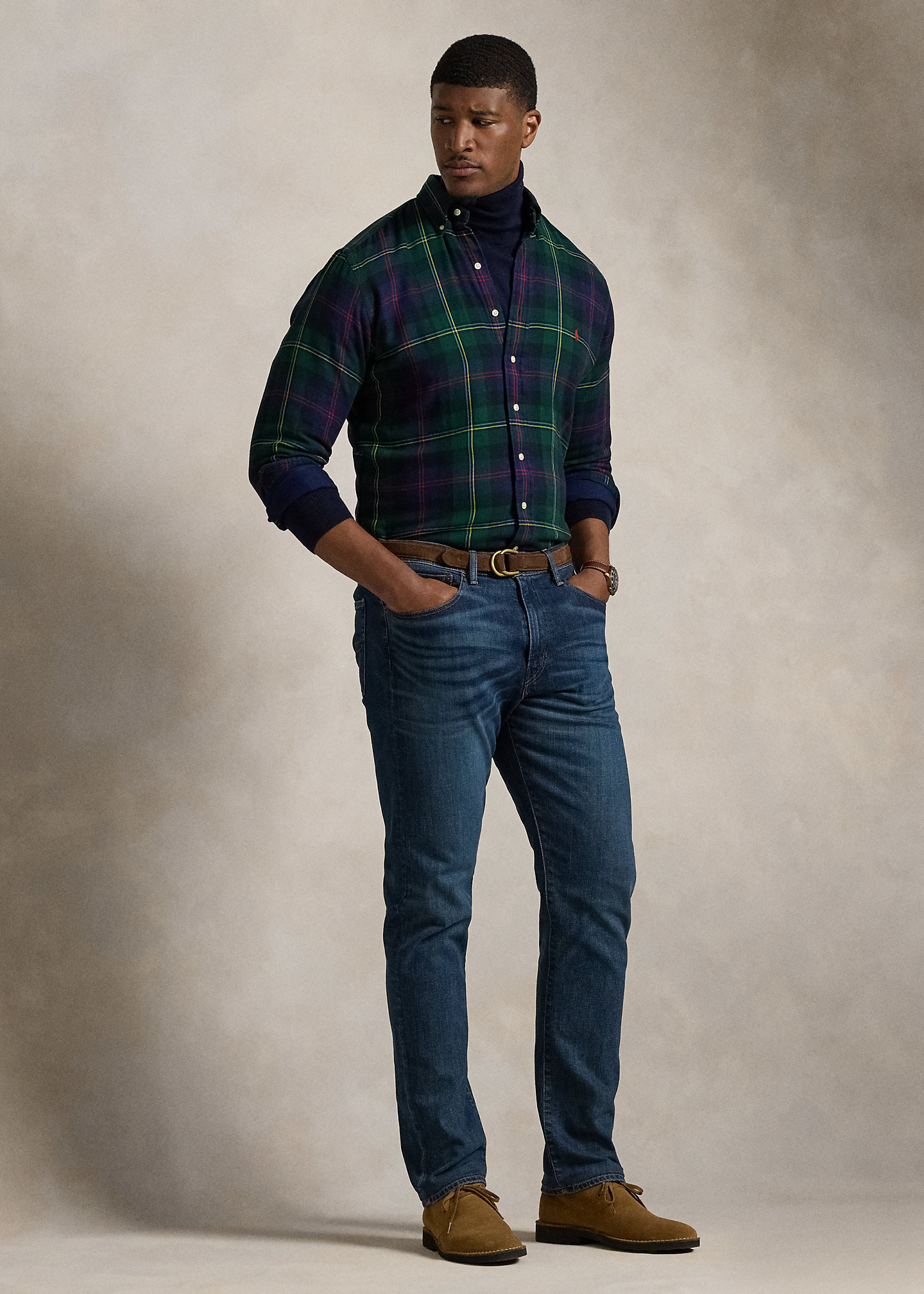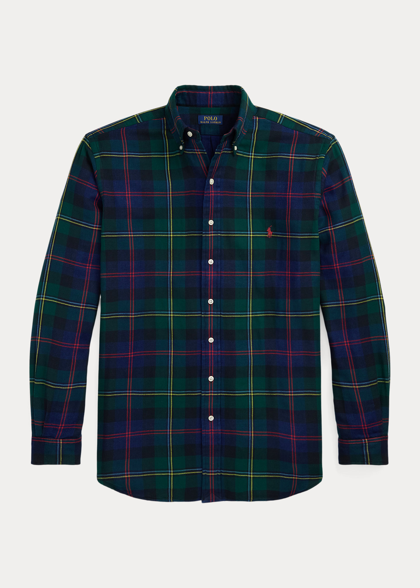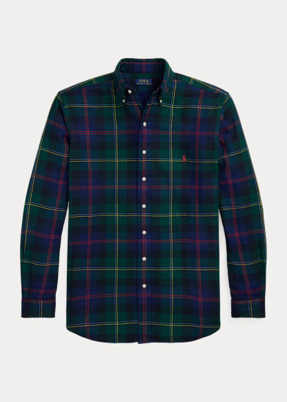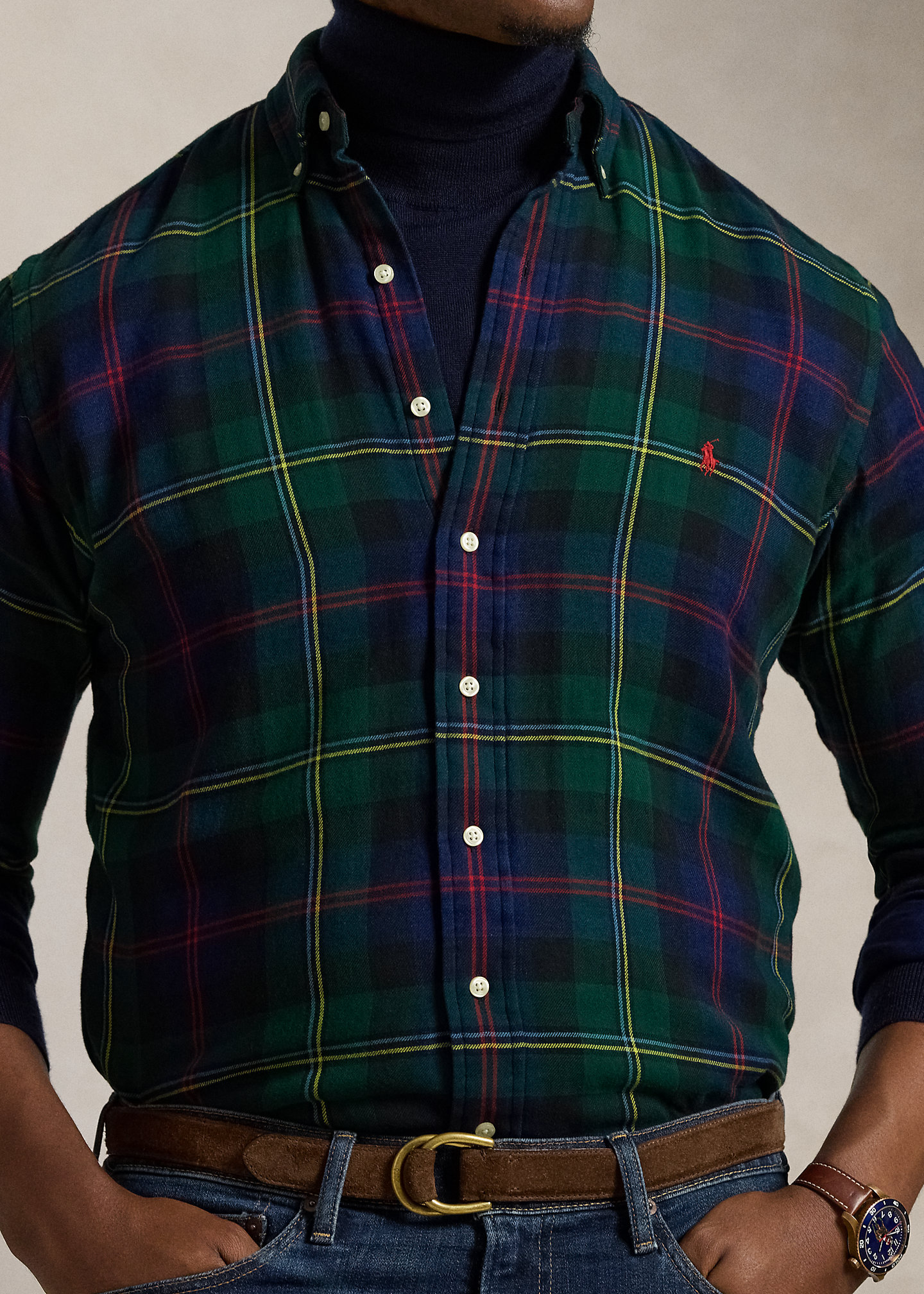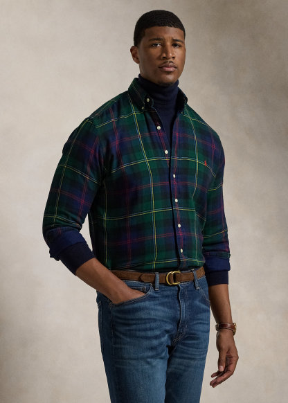 - Button-down collar. Buttoned placket. Long sleeves with buttoned barrel cuffs.