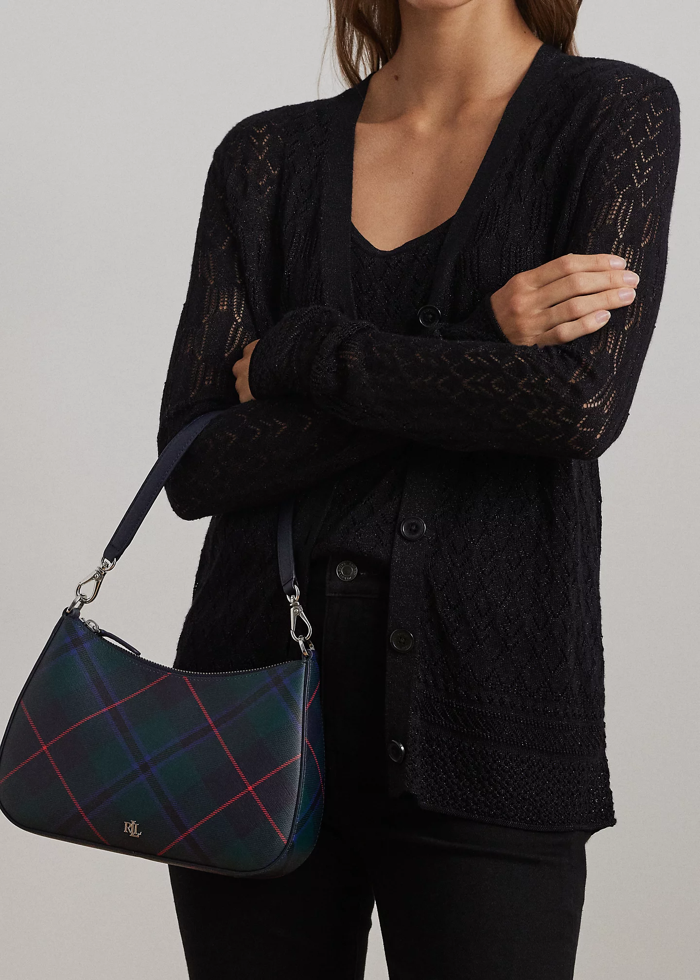 - Top zip closure. Polished “LRL” metal logo at the front. “Lauren Ralph Lauren” foil-printed logo at the back. “Lauren Ralph Lauren est. 1967”–engraved metal plaque at the interior.