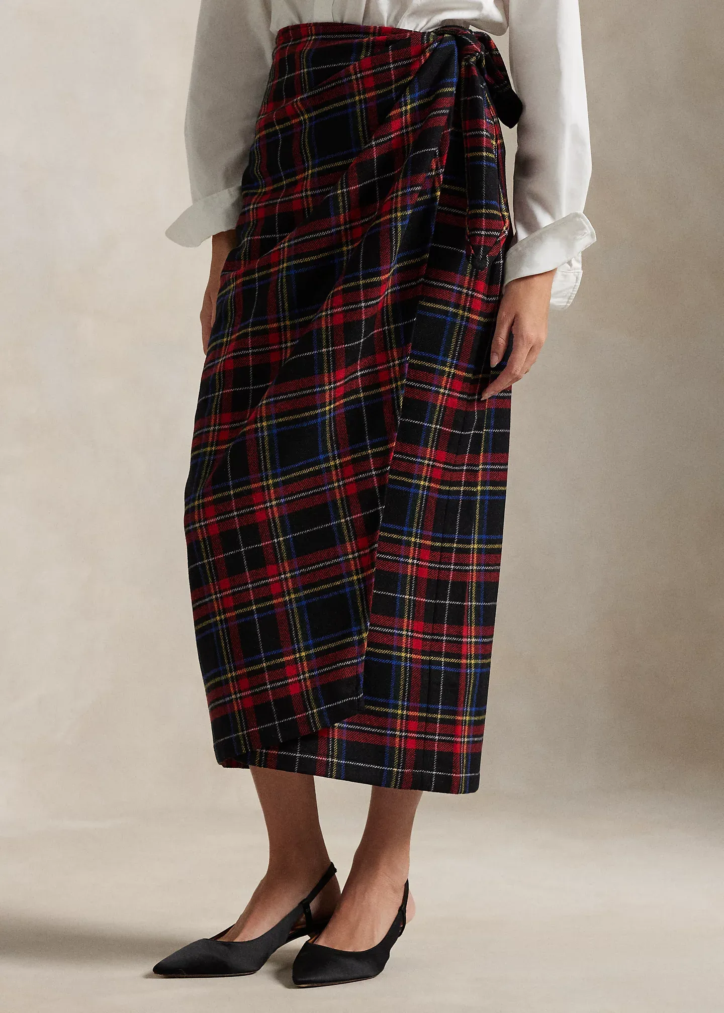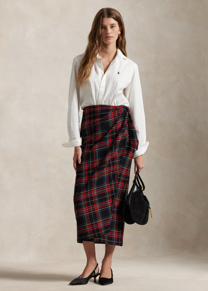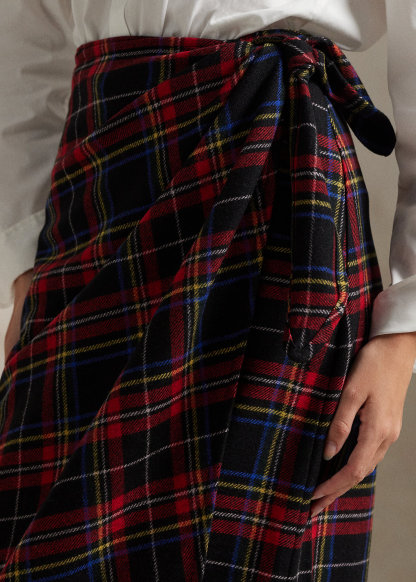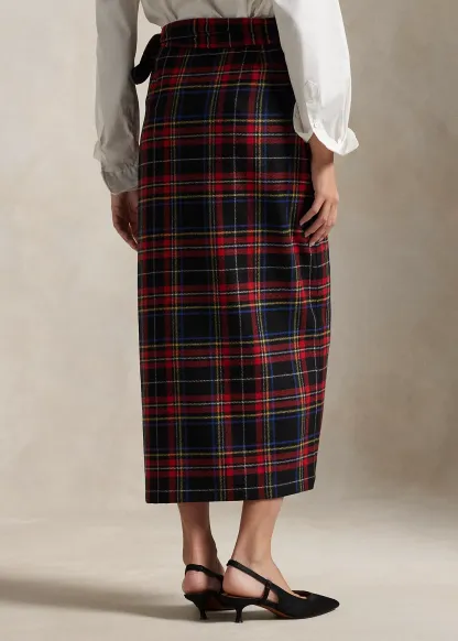 Plaid Wool-Blend Wrap Skirt