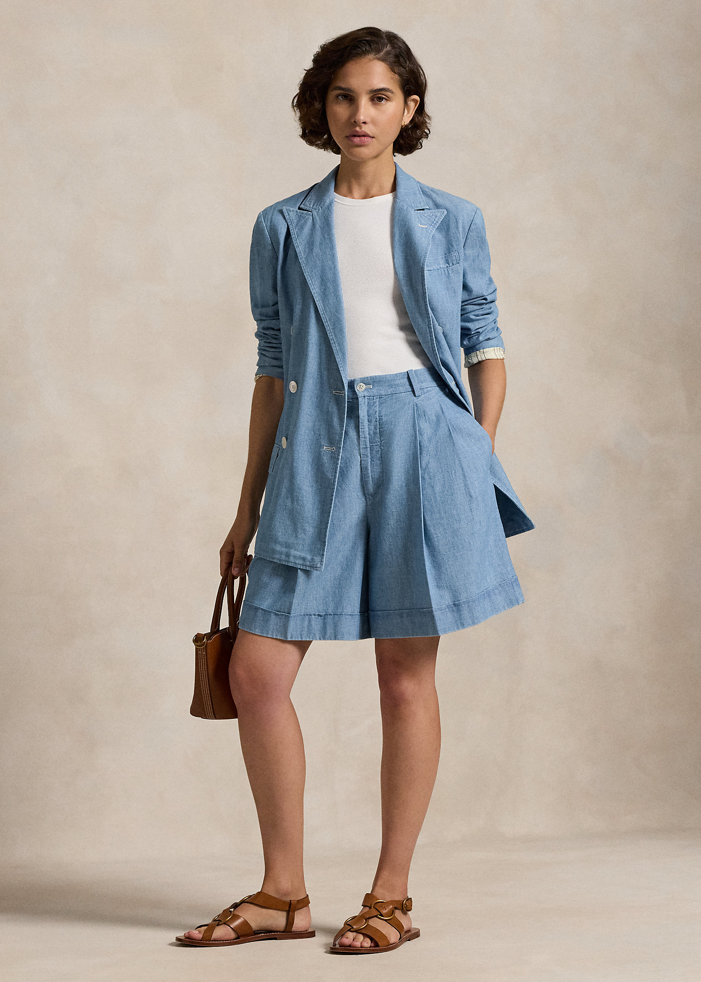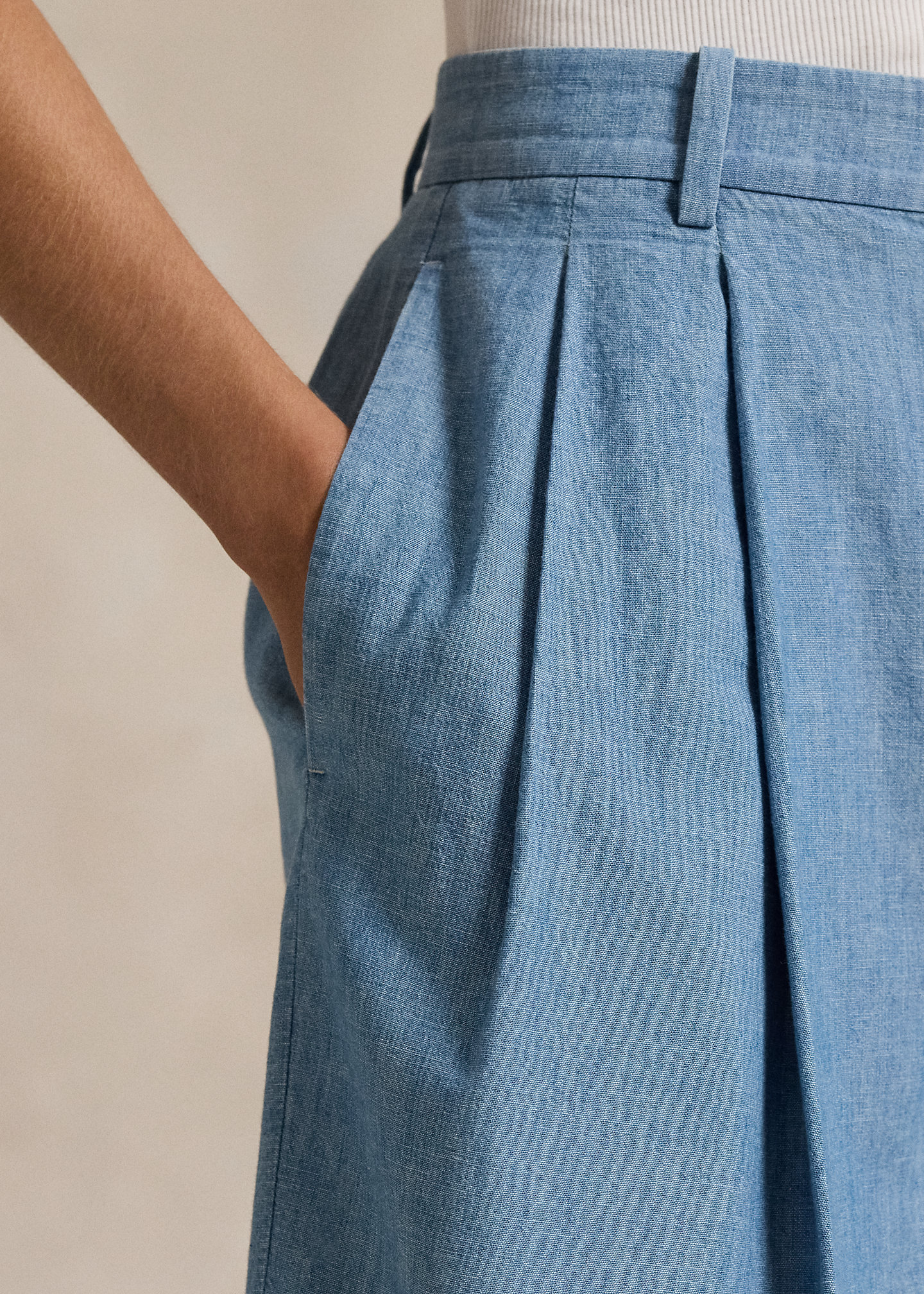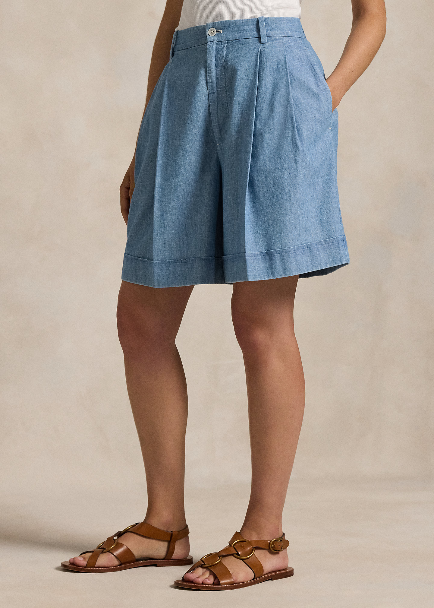Pleated Cotton Chambray Short