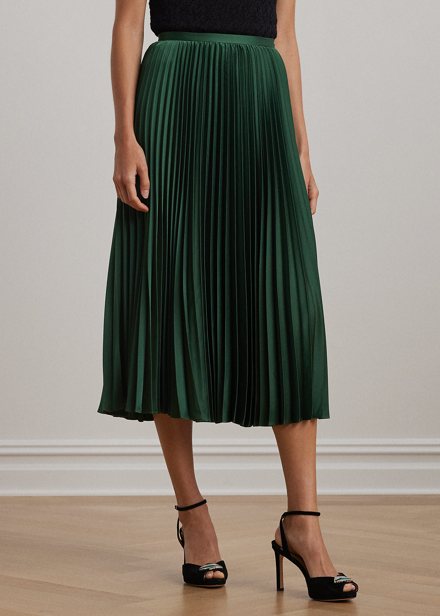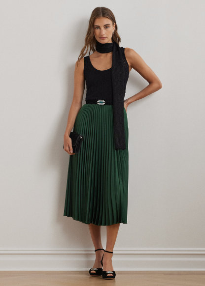 Pleated Satin Charmeuse Skirt