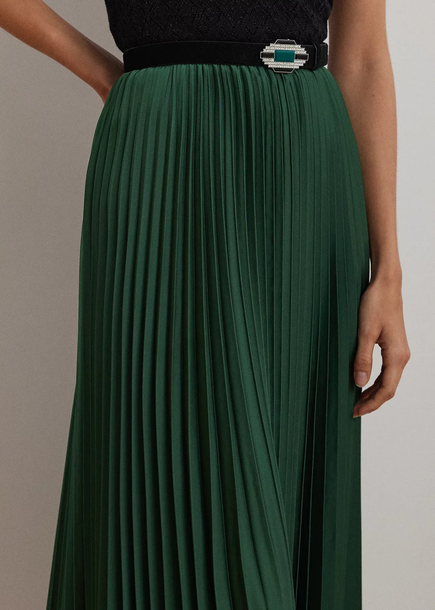 - Sunburst pleating throughout.