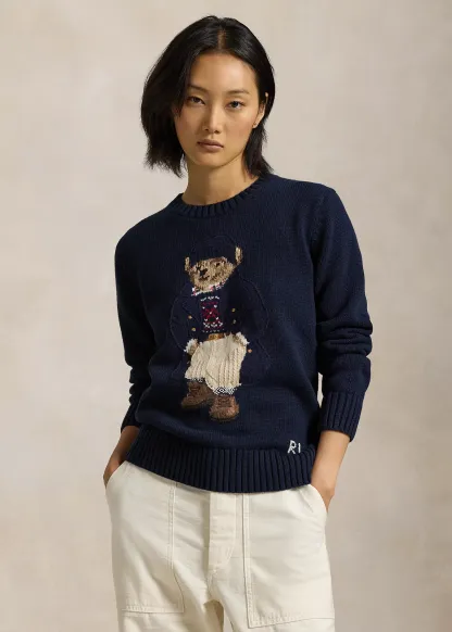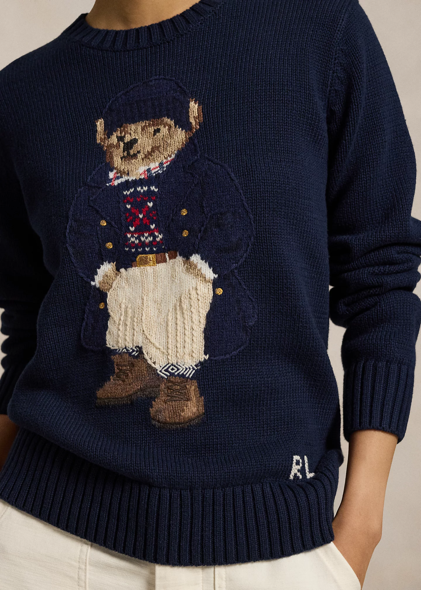 - Polo Bear intarsia-knit and embroidered at the front. "RL" cross-stitched at the left hem.